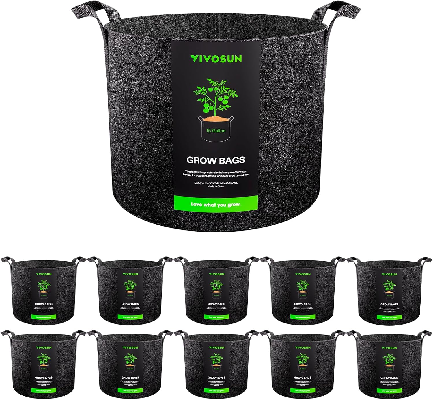 VIVOSUN 10-Pack 15 Gallon Grow Bags, Reinforced Planter Fabric Pots for Gardening Black