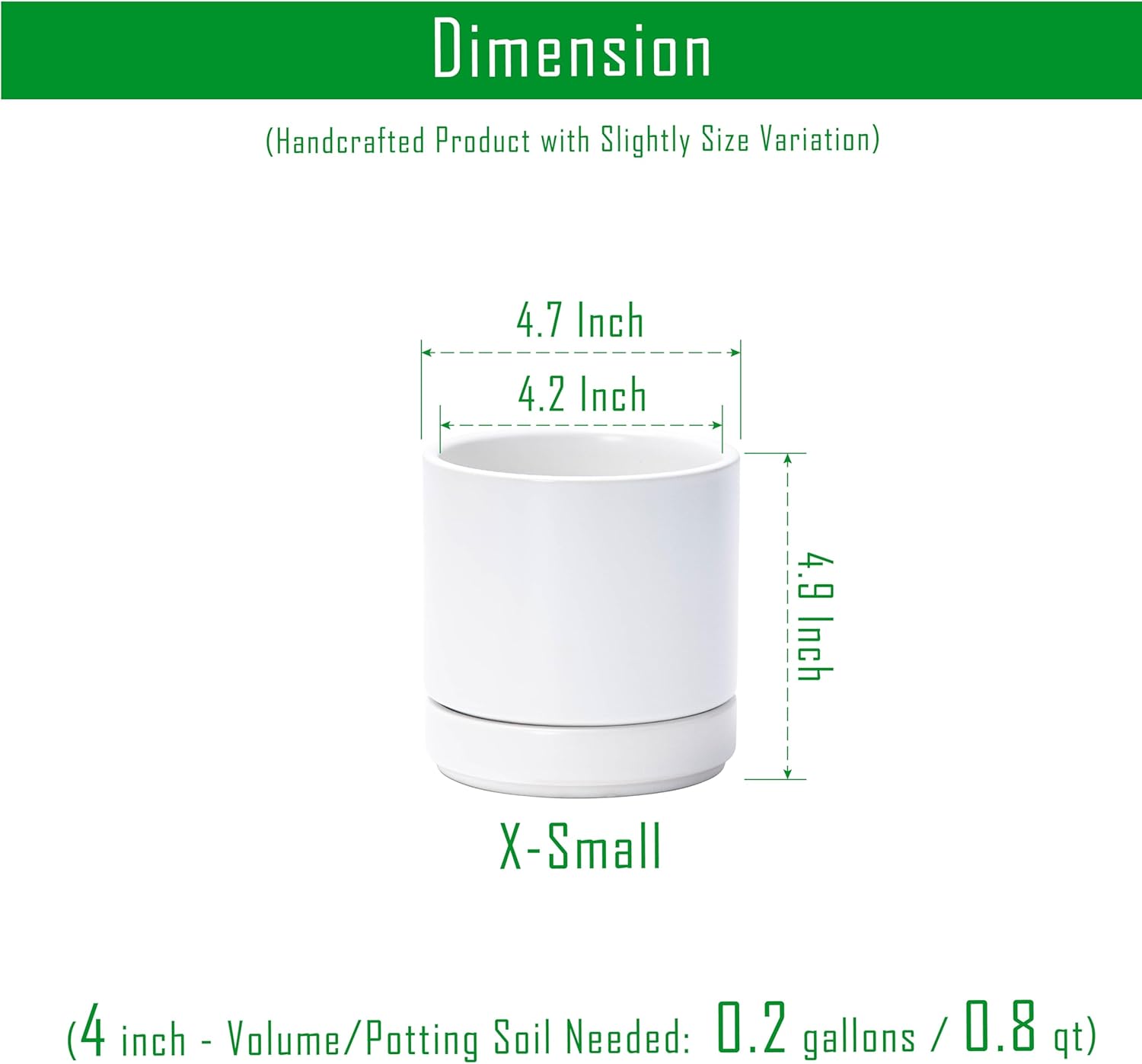 - Pack of 2 Planter Pots - 4.7" Diameter (4.2" Inner Diameter) * 4.9" Height. Potting Soil Needed≈ 0.2 Gallon / 0.8 qt.