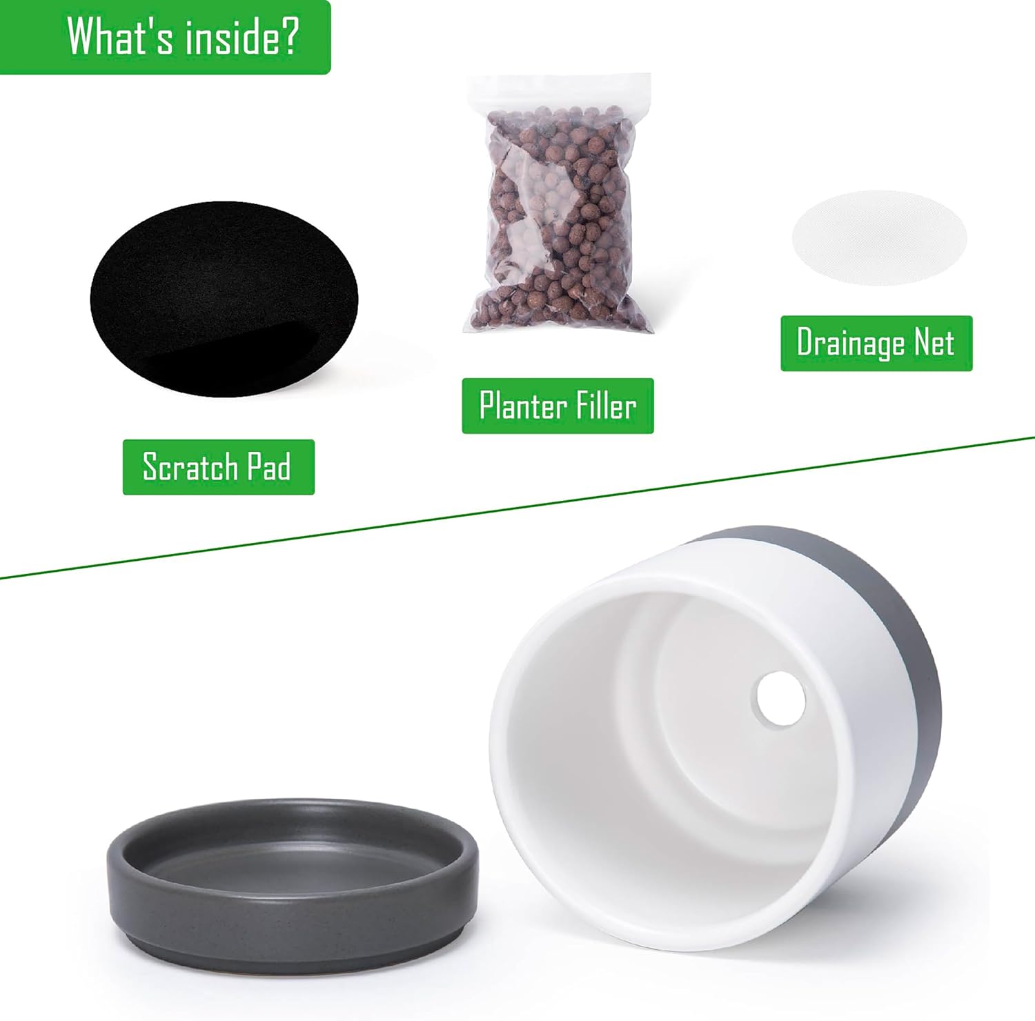- Included Accessories - Drainage mesh nets and tabletop scratch pads. (Plants Not Included)