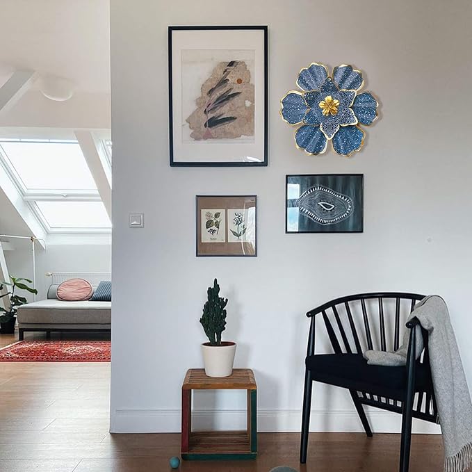 - 【WIDELY APPLICATION】This metal wall art is a dimensional blooming flower with a bright and vibrant Blue. The metal flower wall art will add a splash of color for Bathroom Patio Fence Garden Bedroom Living Room, and more.