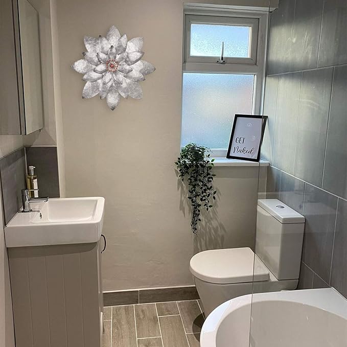 - 【WIDELY APPLICATION】This metal wall art is a dimensional blooming flower with a bright and vibrant Galvanized silver. The metal flower wall art will add a splash of color for Bathroom Kitchen Dining Room Bedroom Living Room, and more.