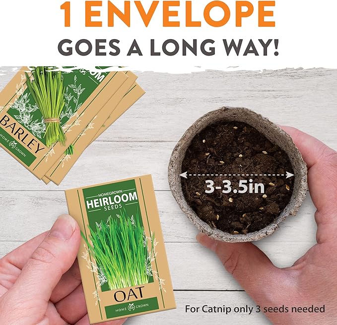 - Perfect for Pet Parents & Gift-Givers: Whether you’re a devoted cat owner or looking for a thoughtful gift for a pet lover, this 4-variety grass seed pack makes a practical and appreciated choice. Offering both entertainment and wellness benefits, it’s a great addition to any pet care toolkit. The charming packaging also makes it a welcome surprise in any cat-friendly household.