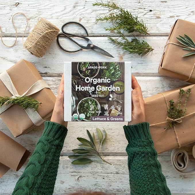 - Spade To Fork Kits - Our company is family owned and operated right here on our 65 acre farm in rural Oregon. Each Spade To Fork indoor garden kit contains 5 types of Certified USDA Organic Non GMO seeds, including Arugula + Spinach + Loose Leaf Lettuce + White Russian Kale + Red Romaine; 5 Certified USDA Organic compostable peat pots; 5 Certified USDA Organic rich potting soil discs; 5 custom wood burned plant markers; our beautiful and helpful 26pg growing guide.