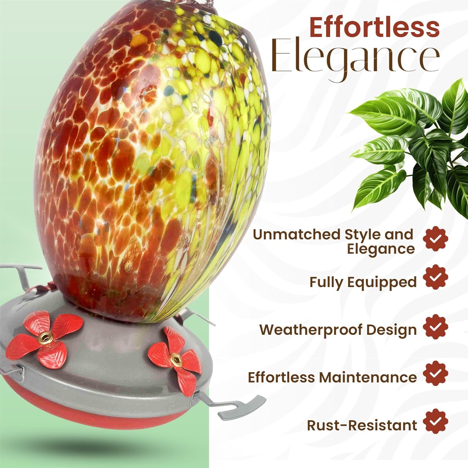 - Experience Nature's Beauty Up Close: Transform your garden into a lively oasis with our vibrant, hand-blown glass hummingbird feeder; Watch as these captivating birds grace your space, adding color and joy to your outdoor environment