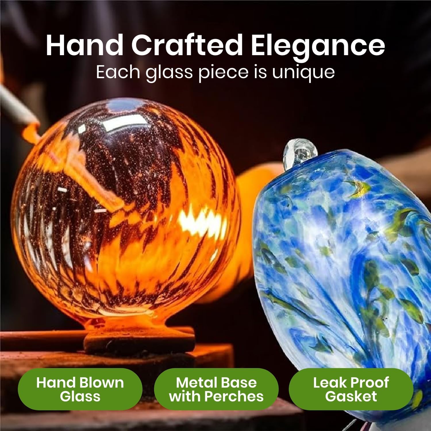 - Durable Materials: Crafted from premium, rust-resistant materials and hand blown glass, our hummingbird feeder with ant moat is easy to clean and built to last; It stands up to the elements, ensuring a safe and long-lasting haven for hummingbirds year-round