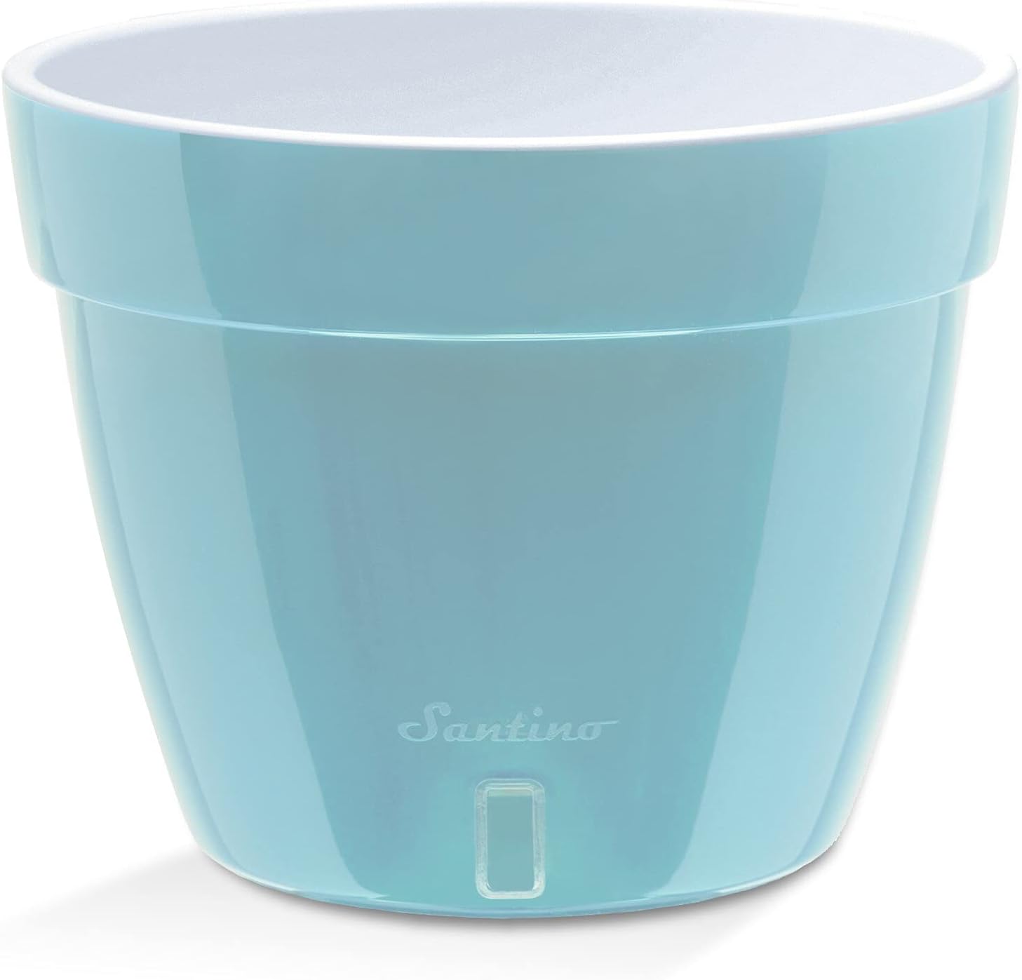Santino ASTI 10.6 Inch Self Watering Planters Menthol/White (Set of 3) for Indoor Plants - Premium Quality Modern Plastic Pot w/Water Level Indicator for All House Plants, African Violets and Dahlias