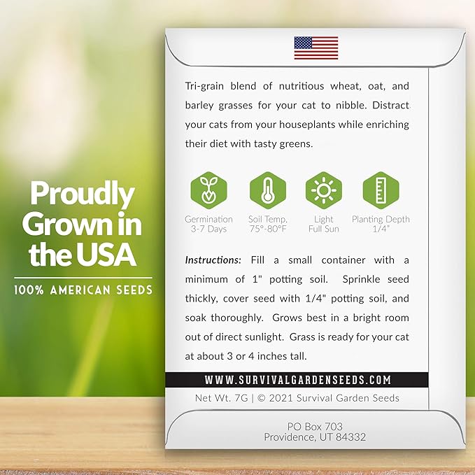 - The Info You Need to Grow - The Cat Grass seeds for indoor cats are packed in a beautiful paper packet with instructions for successful growing and germination in your home garden. Each package also has instructions for saving seeds after harvest. Getting started is simple for both beginner and experienced gardeners.