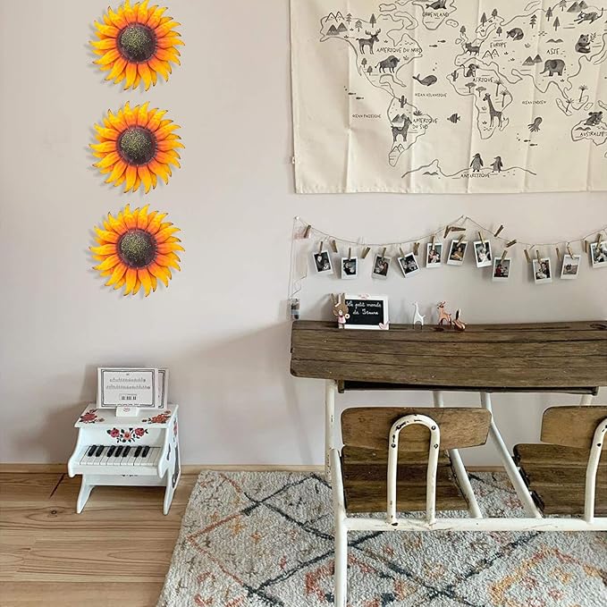 - 【BRIGHTEN UP YOUR SPACES】Sunflower Decoration 6 Inch Inspirational floral wall decoration with craft paint. Bright yellow color bring your space room a more refreshing feel of nature.