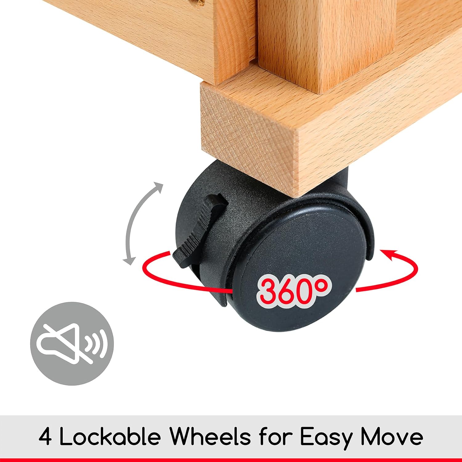 - SOLID BEECHWOOD STUDIO ART CART: The wood storage trolley art cart in size 35'' x 28-1/3'' x 15-3/4'', made of solid beechwood, natural, light-weight, and sturdy. It can hold weight up to 88lbs. Oil finished surface is super smooth and ZERO-glitch. Hand-sanded corners and edges provide maximum security.