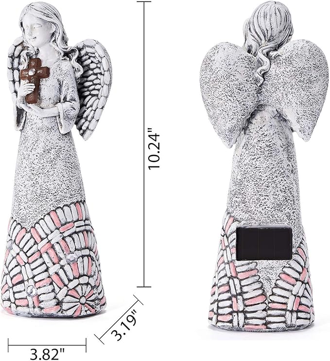 Angel Garden Statues Outdoor Solar Decor Gifts for Women Cross Praying for Cemetery Backyard Lawn Yard Decoration(10.24inch)