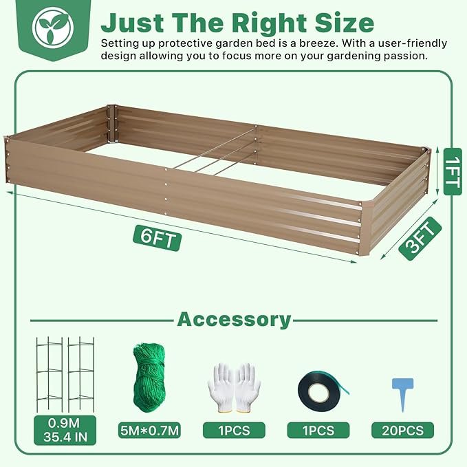 - Built to Last: Authentic 0.5mm thick galvanized steel sheets. Unlike some others, we don't present false measurements to you. Our high-quality galvanized raised garden bed are not only durable but also resistant to rust and corrosion. The sturdy and long-lasting metal garden bed ensures your garden bed stands the test of time.