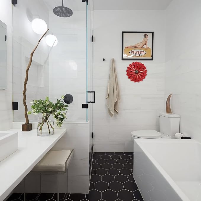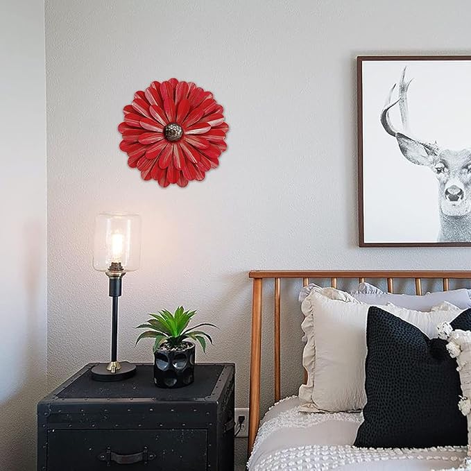 - 【WIDELY APPLICATION】This metal wall art is a dimensional blooming flower with a bright and Red, The metal flower wall art will add a splash of color for the bathroom kitchen room bedroom living room garden patio porch office and more.