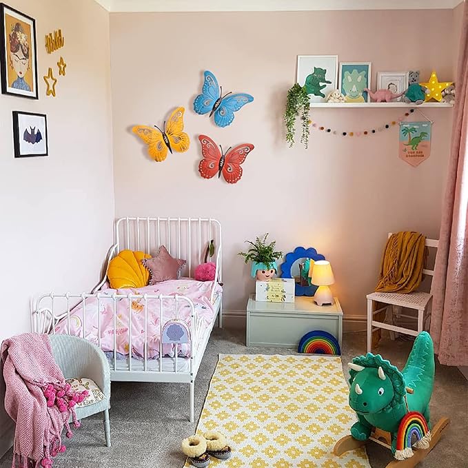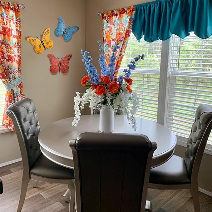 - 【METAL BUTTERFLY WALL DECORATION】3 pack metal butterfly wall art with craft painting. bright color brings your spacious room more refreshing feel of nature. it has been created in high grade metal. the exquisite cutting technology of this metal wall decor makes the butterfly look lifelike.