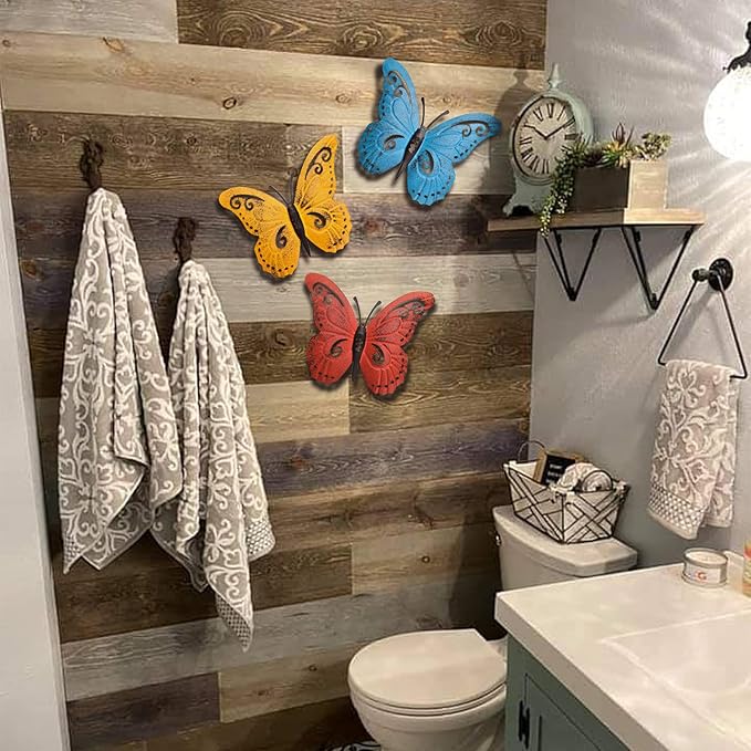EASICUTI Metal Butterfly Wall Decor Butterfly Wall Art Hanging Sculpture For Indoor Outdoor Home Bathroom Living Room Bedroom Or Porch Patio Fence Yellow Red Blue 3 Pack 9.4" L x 7.5" H