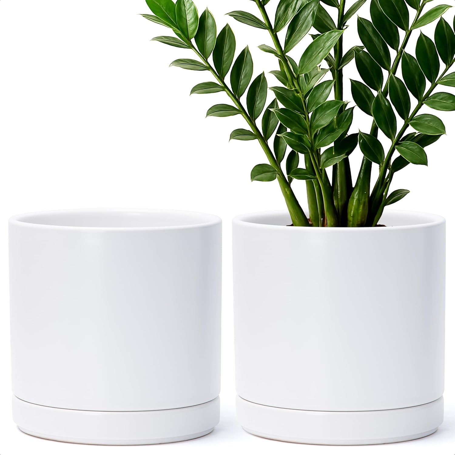 D'vine Dev Set of 2 Plants Pots, 8.2 Inch Ceramic Planter Pot for Plants with Drainage Hole and Saucer, White, 94-V-D-1