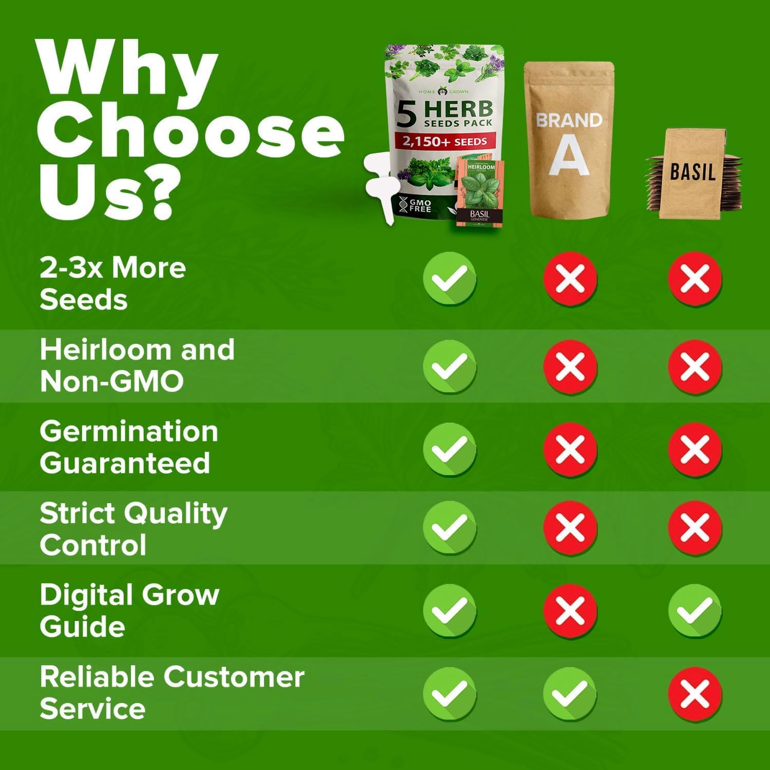 HOME GROWN 5 Herb Seeds for Planting 2,150+ Non-GMO Heirloom Seeds | Extra Large Variety Pack Herb Kit – Indoor Outdoor & Hydroponic | Culinary Seed Set | Grow Your Own Herbs | Gift for Beginners