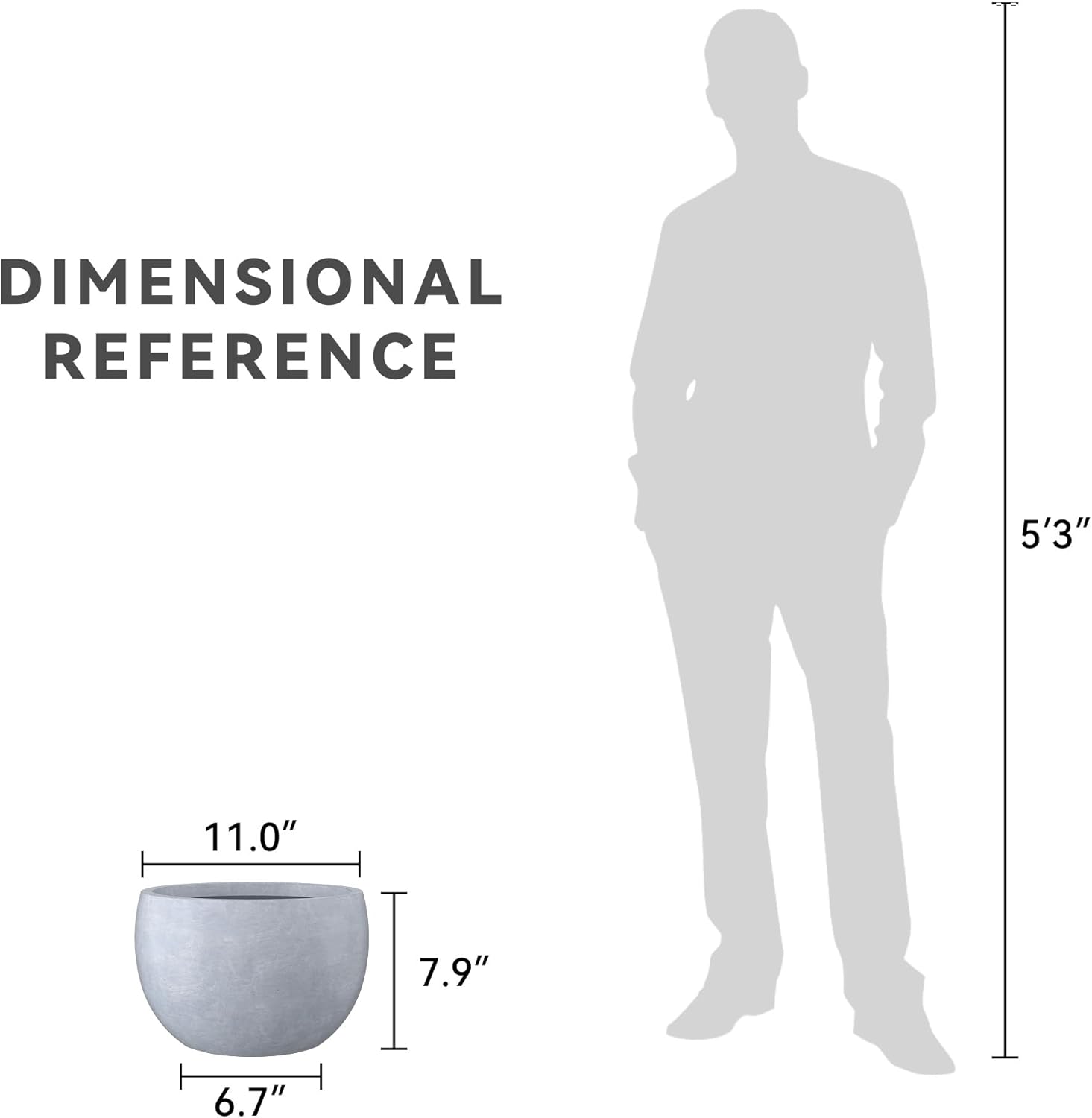 Kante 11.8" Dia Round Concrete Planter, Outdoor/Indoor Large Bowl Plant Pots with Drainage Hole and Rubber Plug for Garden Patio Balcony Home, Gray