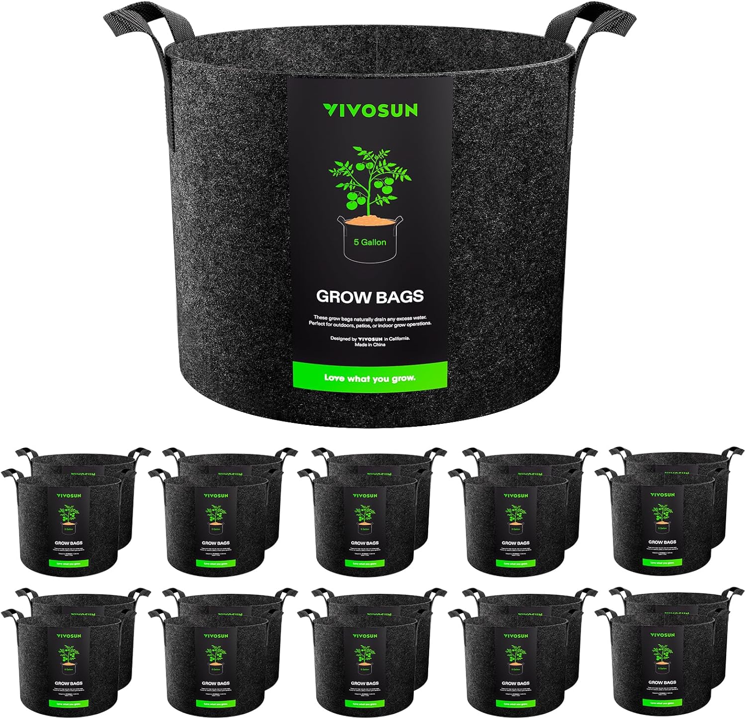 VIVOSUN 20-Pack 5 Gallon Grow Bags, Heavy Duty Thickened Nonwoven Fabric Pots with Handles for Flowers Fruits and Vegetables Black