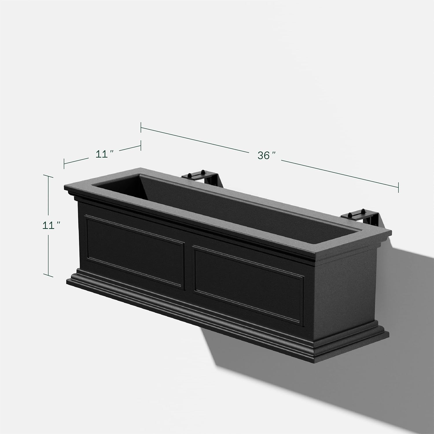 • DIMENSIONS & DETAILS: This railing planter’s exterior dimensions measure 11” in Height, 11” in Width, 36” in Length, and the interior dimensions measure 7.5” in Height, 6.75” in Width, 31.75” in Length