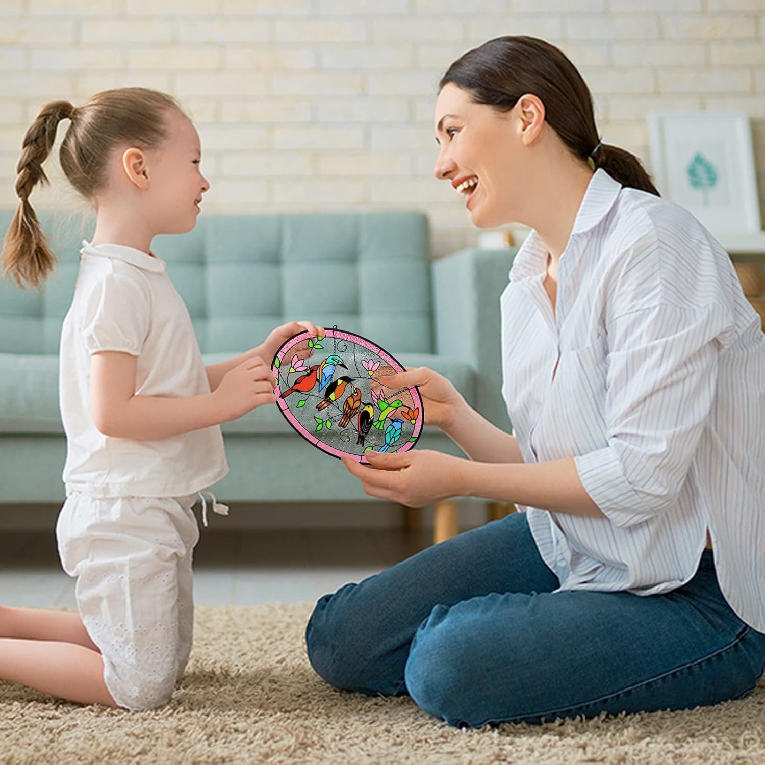- High Quality Stained Glass - The suncatcher is made of high-quality stained glass. Compared to other products with fragile and opaque glass, our birds stained glass has a double-sided light transmission, the delicate lines of glass can be seen in the sunlight.