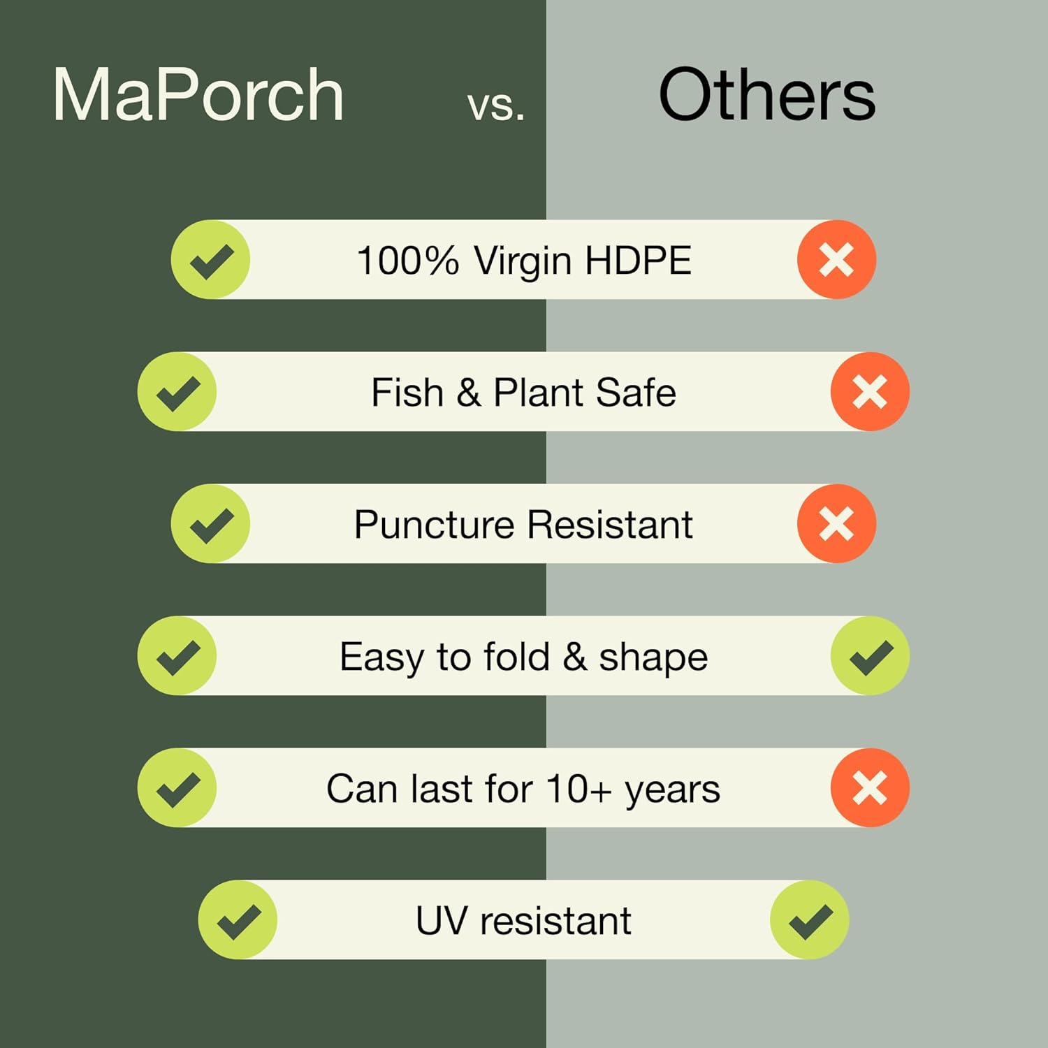 MaPorch HDPE Pond Liner - 16.5 x 26.5 ft, Black, 20 mil - UV Resistant for Pool Liner - Heavy-Duty Leak-Proof Protection for Pond Fountain - Flexible Tear-Resistant Design for Outdoor Fountain