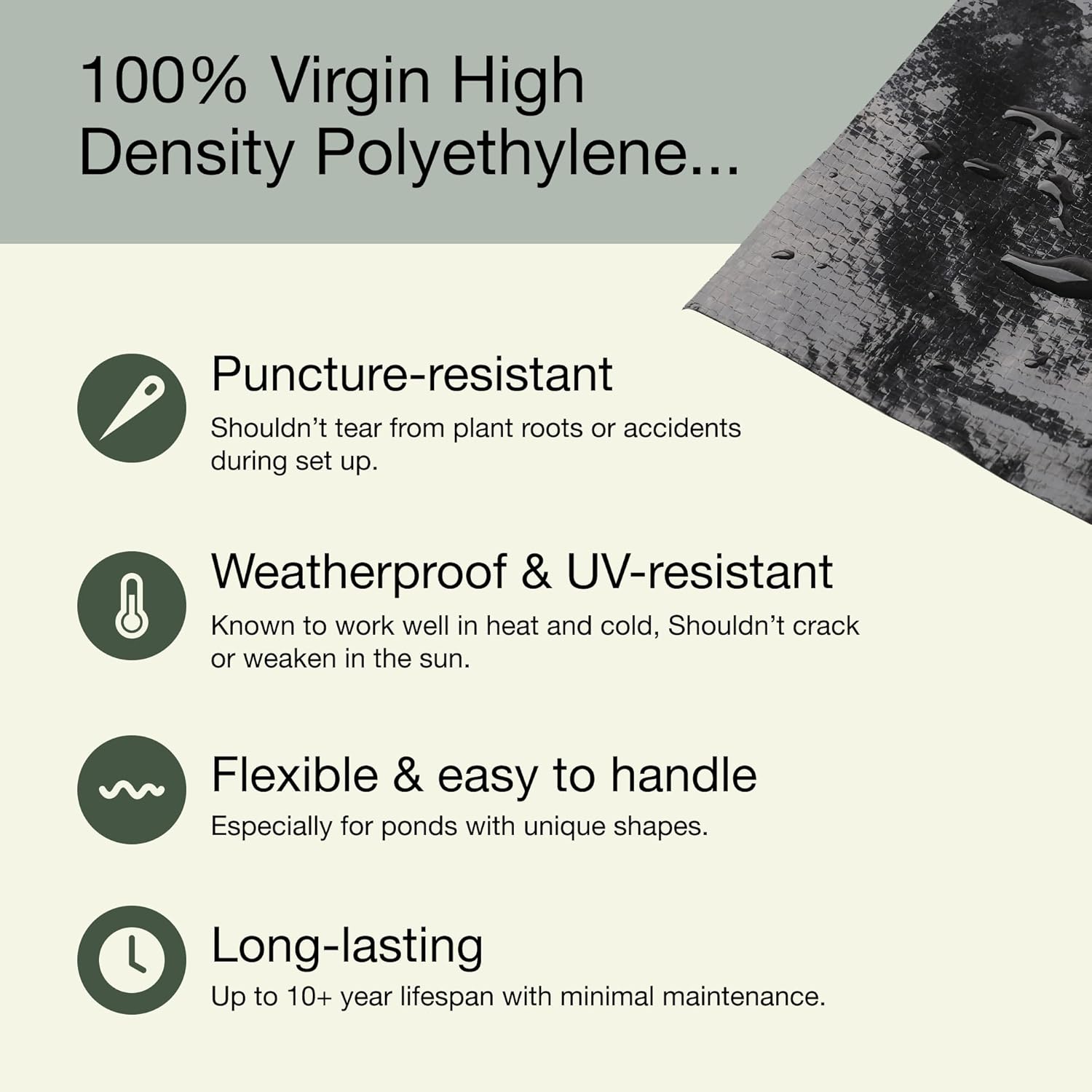 - Versatile Use: Ideal for all water features like koi ponds, lakes, and pool waterfalls. Our pond liner for outdoor ponds is great for any backyard project with its durability and versatility, even on steep sides