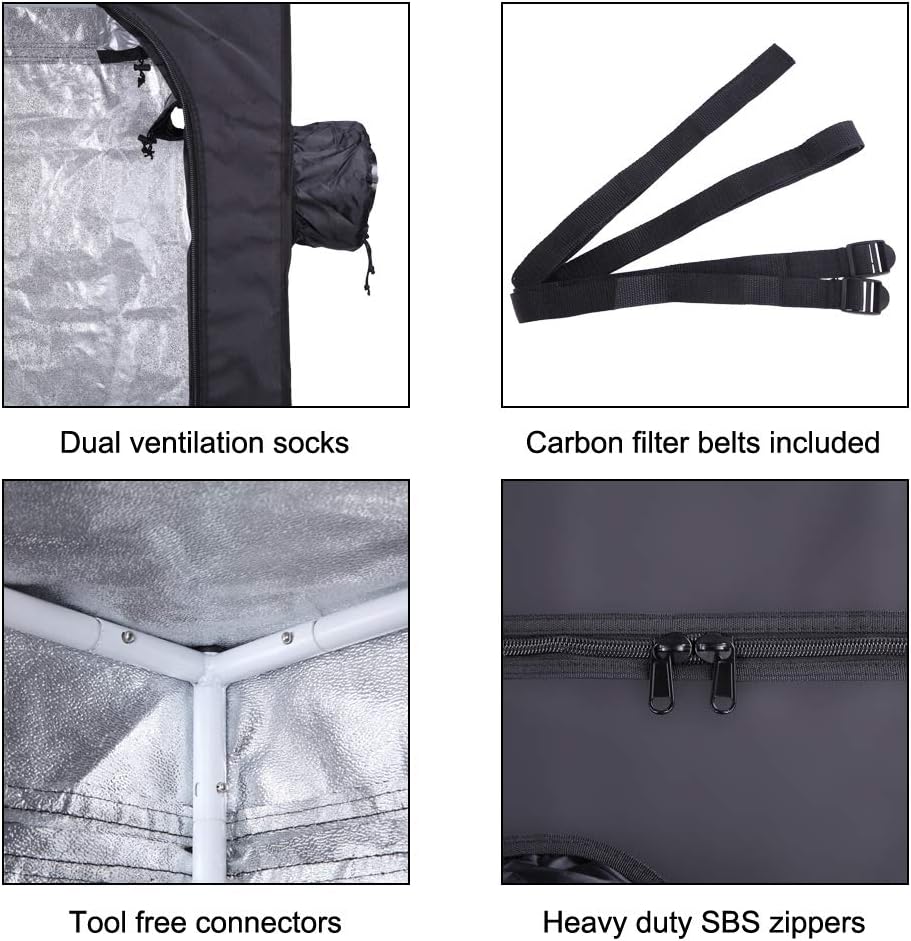 Plant Grow Tent, Black, 90x90x180cm, Indoor Growing with Observation Window and Floor Tray, Oxford Cloth, Eco-friendly Care