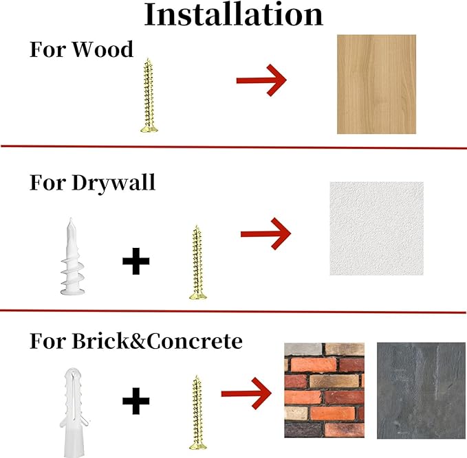 - EASY TO INSTALL - Sets come with all the necessary hardware to install quickly, and securely. Can installed on Brick, Drywall, Wood, and Concrete Walls etc.