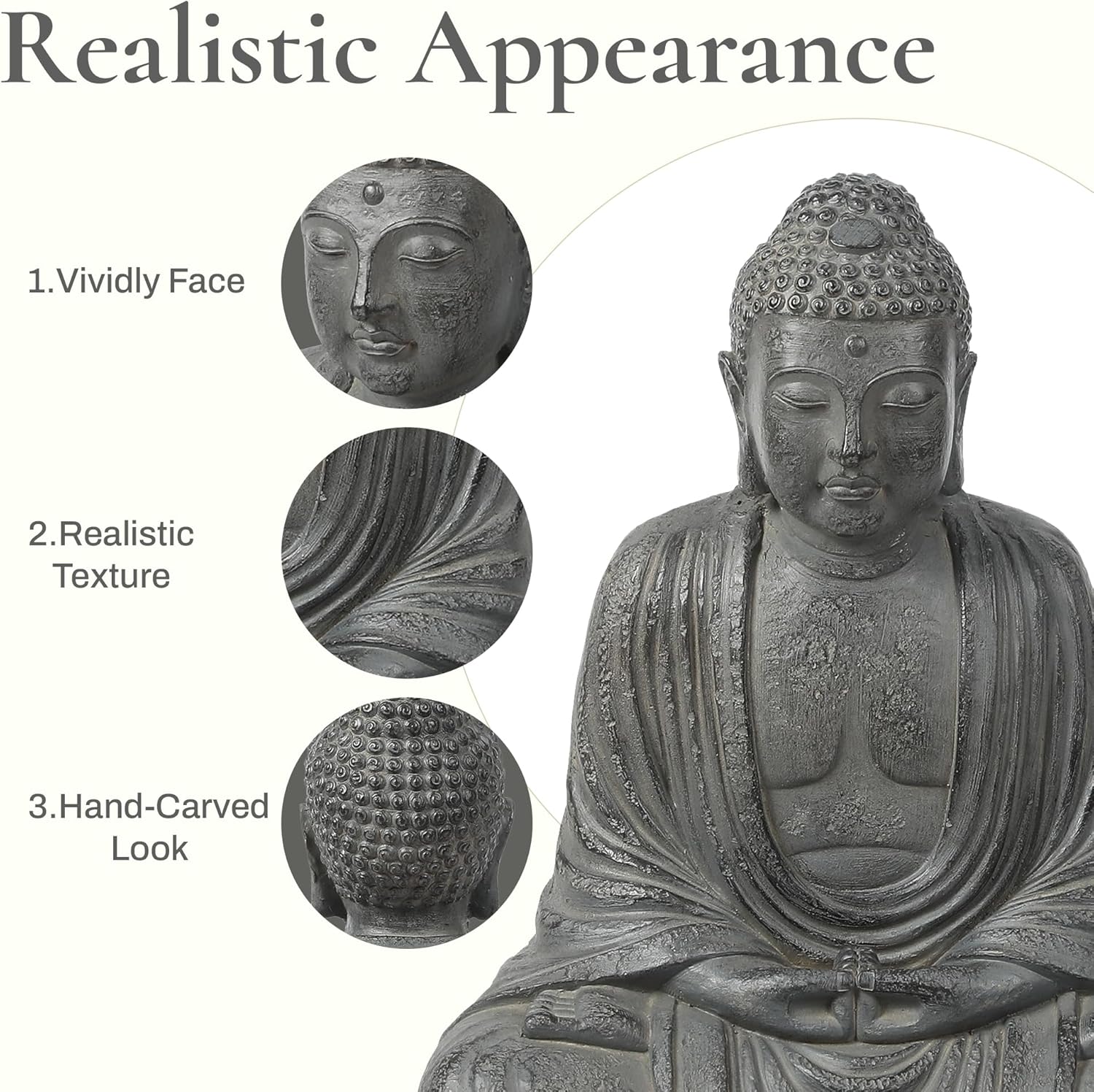 LuxenHome Buddha Statue Outdoor and Indoor, 17" Fiber Stone Meditating Buddha Garden Statues Outdoor, Zen Sculptures, Outdoor Statues for Garden, Patio, Backyard Deck