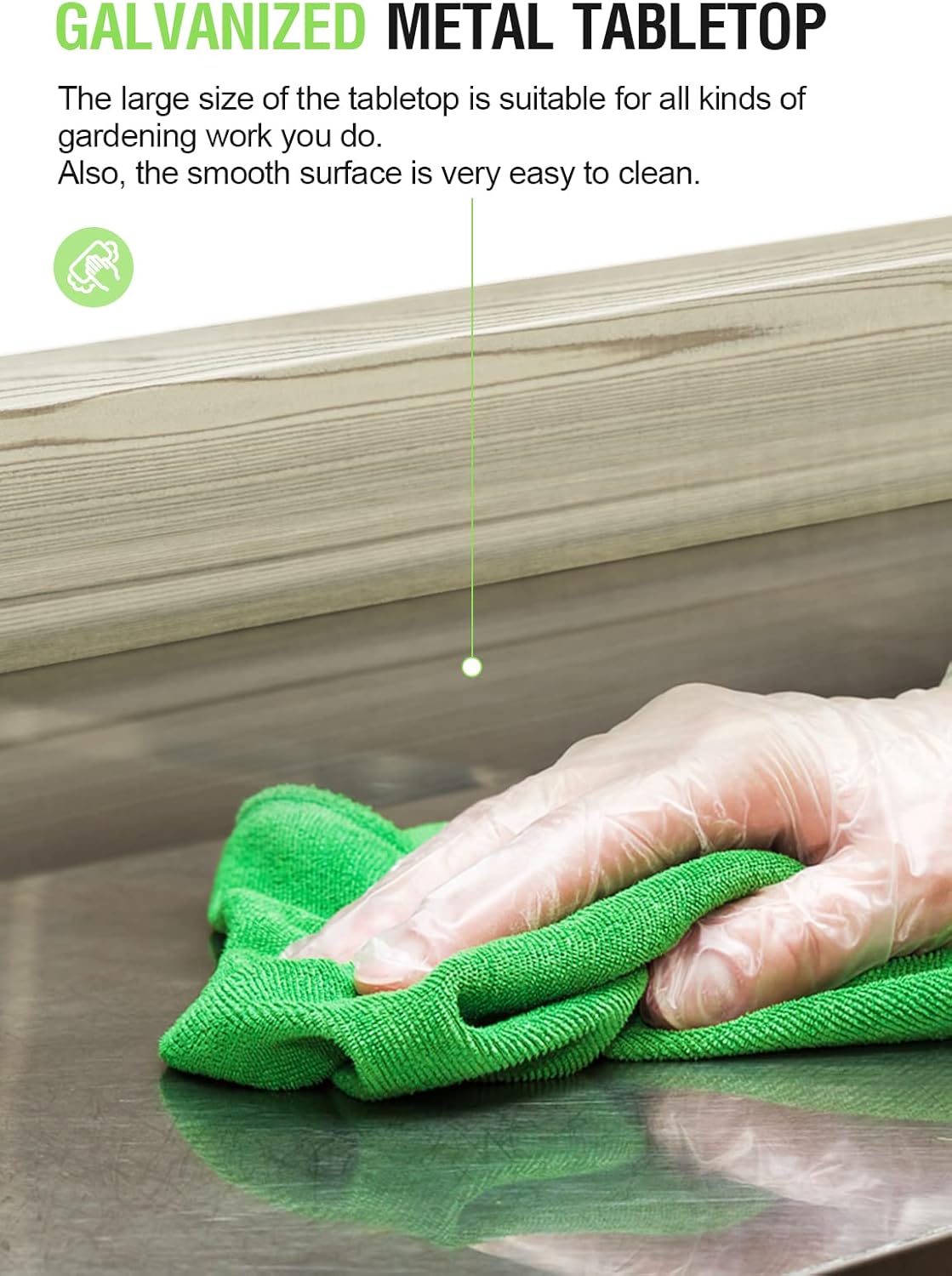 - 🌺Humanized Design - The galvanized top is specifically designed for any garden work. The metal countertop remains rust-proof even in the rain outdoors, with an easier-to-clean surface and overall corrosion resistance, making it easier for the home gardener.
