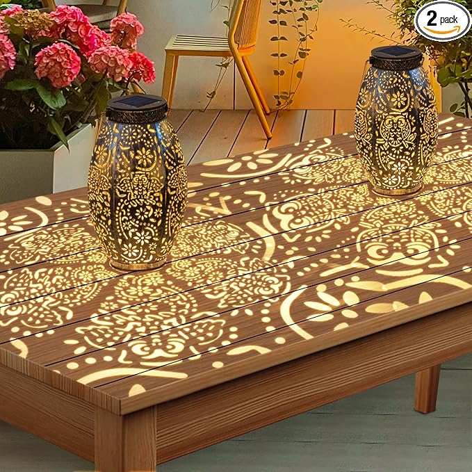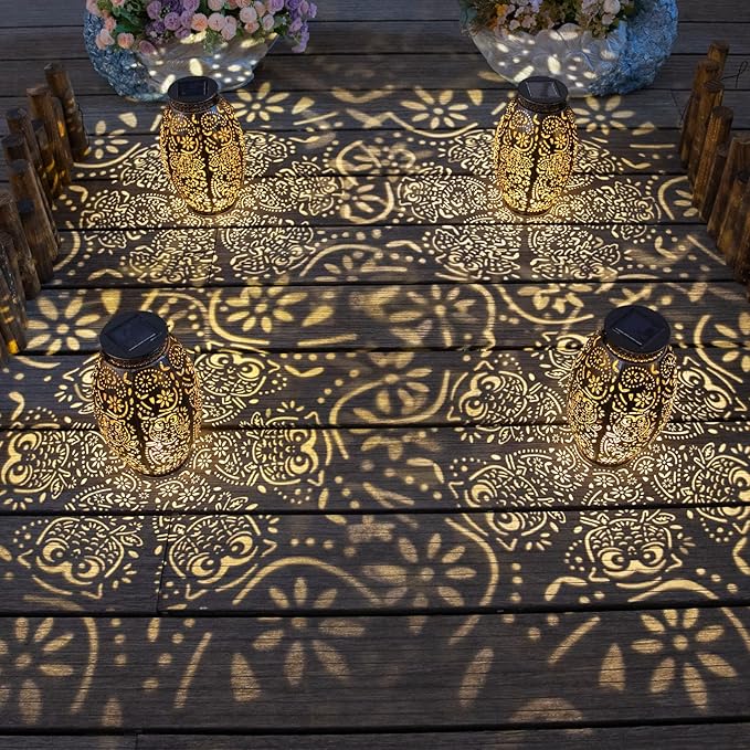 - Bright solar outdoor lantern: 10Lumens LED emit warm white glow at night and display owl flower pattern when you place it on table/chair/steps or hang them near wall/ground. The warm glow create peaceful and romantic ambience for your patio, balcony, garden, yard and walkway.