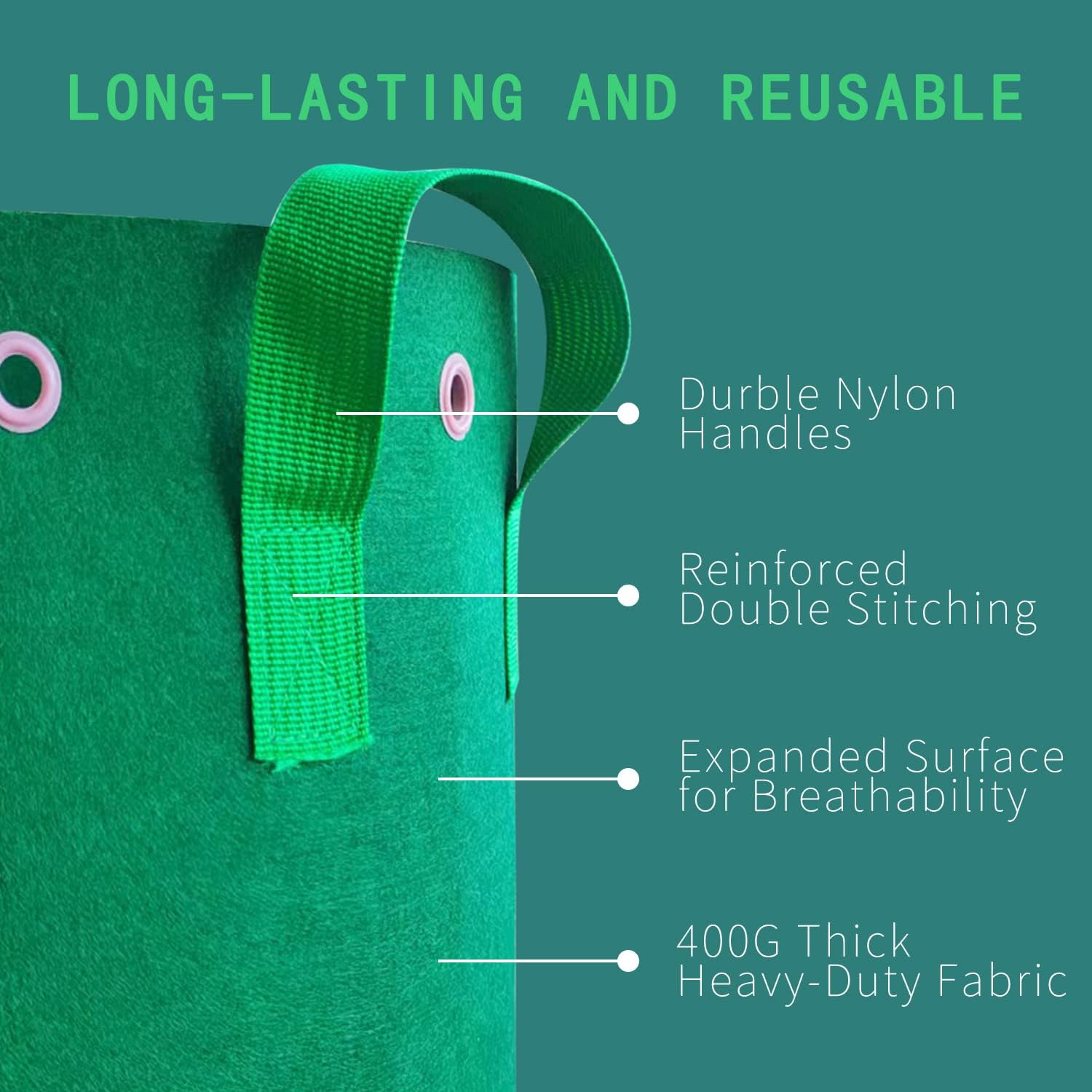 - HEAVY DUTY Handles for easy transport between gardening locations. Extra thick bags made with 400g non-woven material (higher than industry standard) to facilitate air pruning while preventing over exposure of root system to lights or sun.