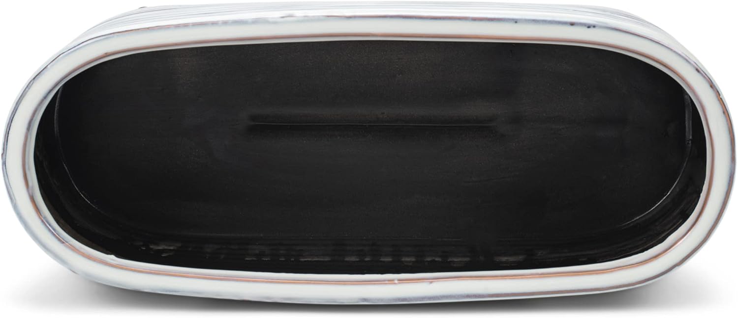 Napco Distressed White Ribbed Oval 15 x 6 Ceramic Table Top Planter