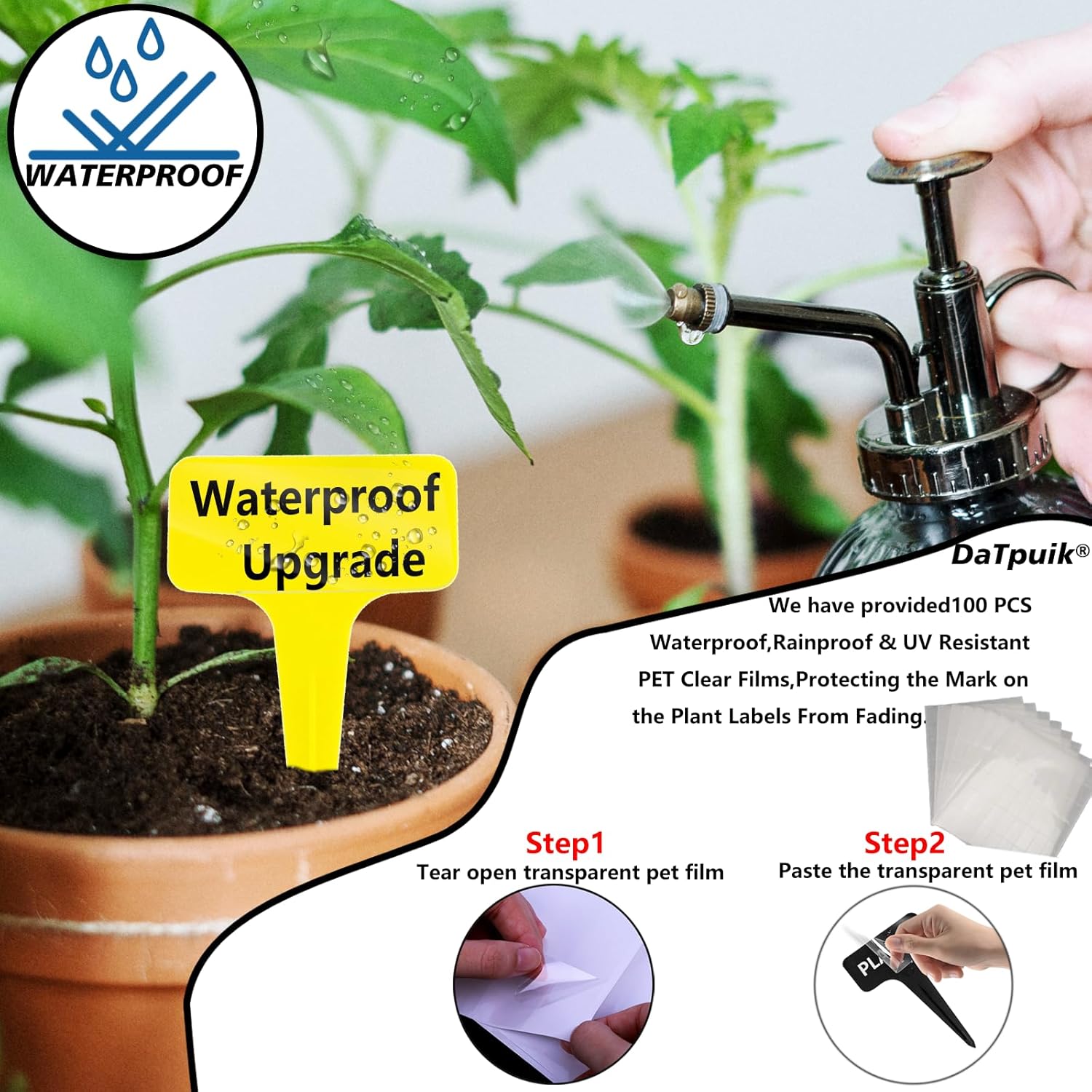 100 Pcs Yellow Thick Plastic Plant Labels Markers Tags Garden Re-Usable T-Type Sign with Marking Pen