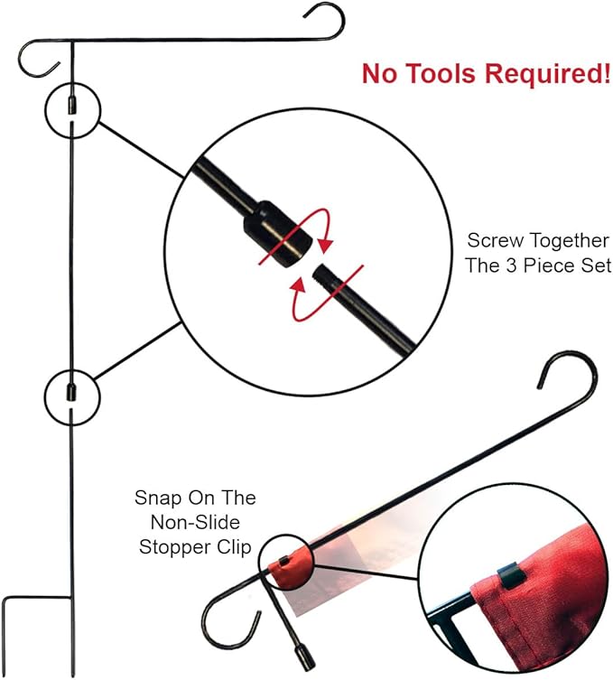 - No Tools Needed Set has 12.5 in x 18 in Garden Flag and 17.5" (w) x 36.5" (h) Assembled Sized Garden Flag Stand