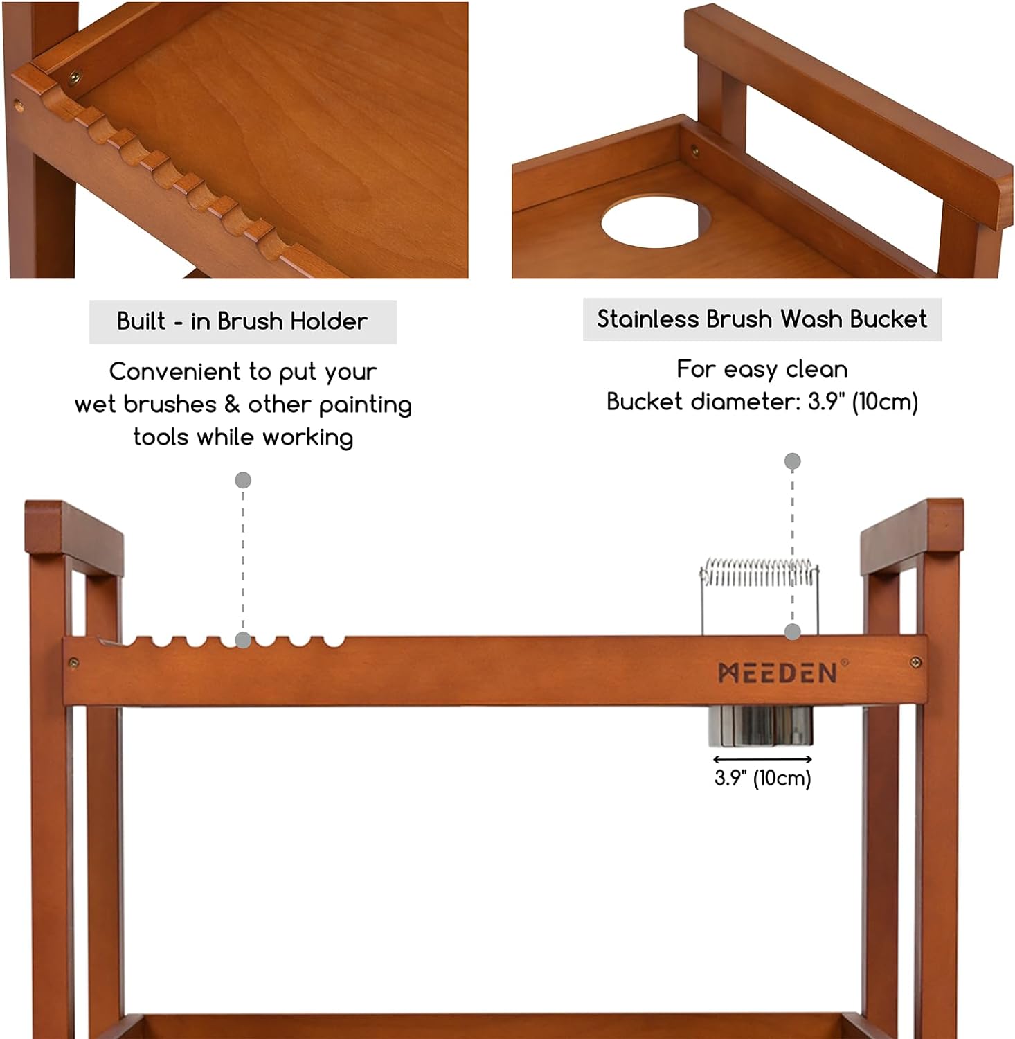 MEEDEN Art Supplies Cart, Walnut 3-Tier Multifunctional Art Storage Cart Organizer, Solid Beech Wood Studio Cart Art Taboret with Caster Wheels, Rolling Utility Cart Organizer for Artist