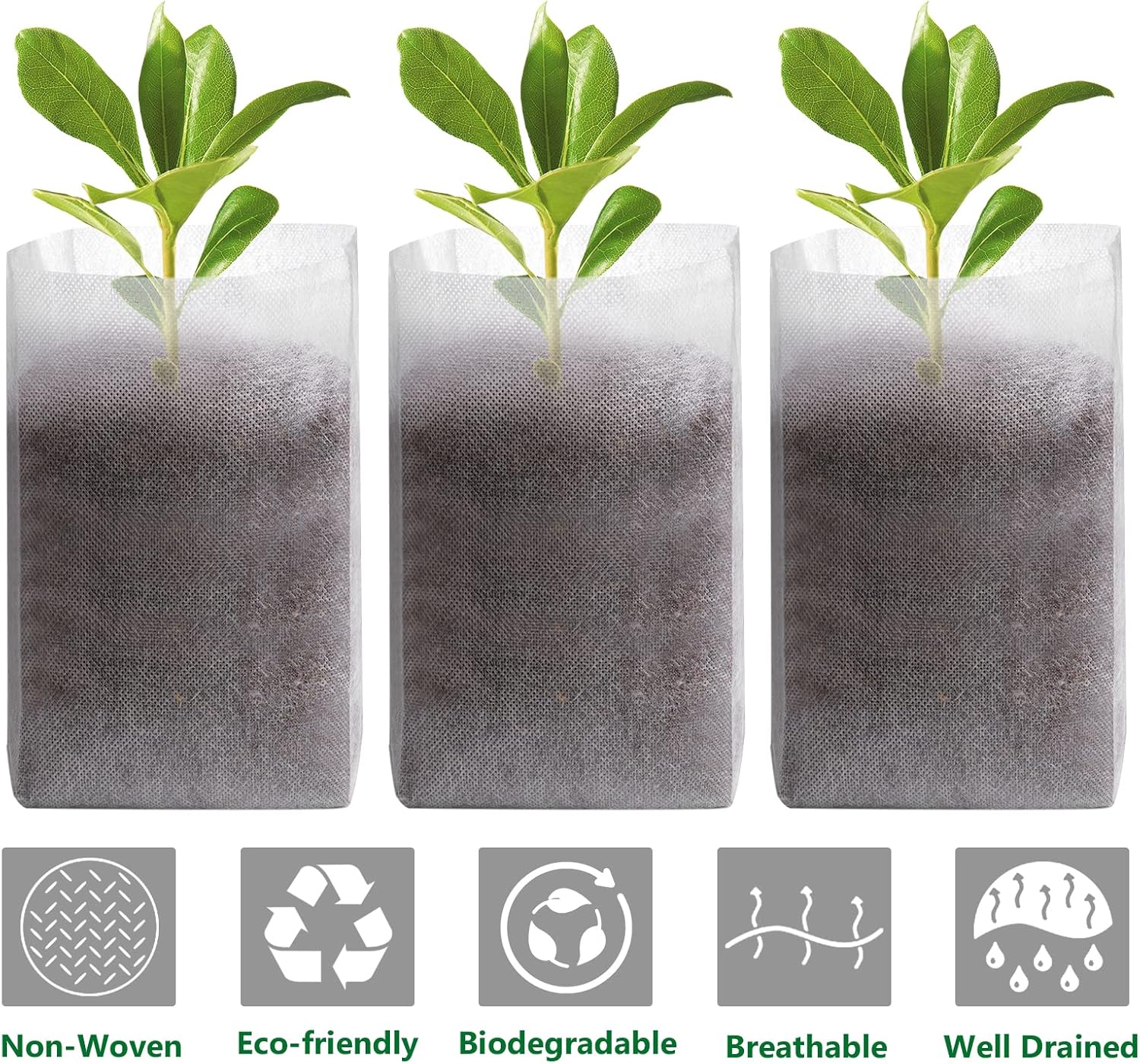 - 【HIGH SEEDING SURVIVAL RATE】The biodegradable plant bags has a small hole design, good drainage, air permeability, nutrient and moisture can be absorbed easily; biodegradable, don't need to remove the bag when transplanting, increase seedling survival rate.
