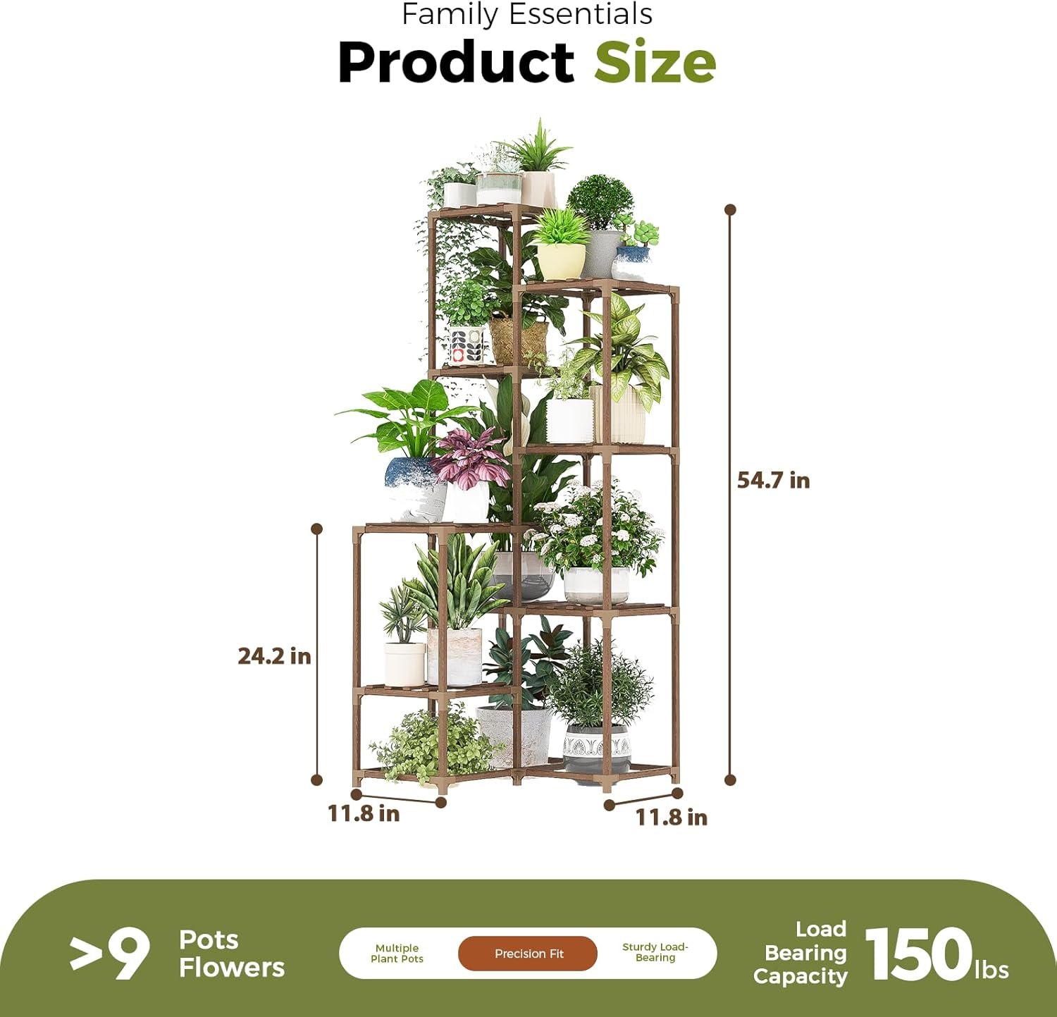 - Corner Plant Stand: it's ideal for installation in indoor corners, maximizing space-saving while adding aesthetic appeal. The product includes 8 shelves, which can hold 14-17 pots of regular size. A single board can hold a high pot plant; Bearing up to 150 pounds.