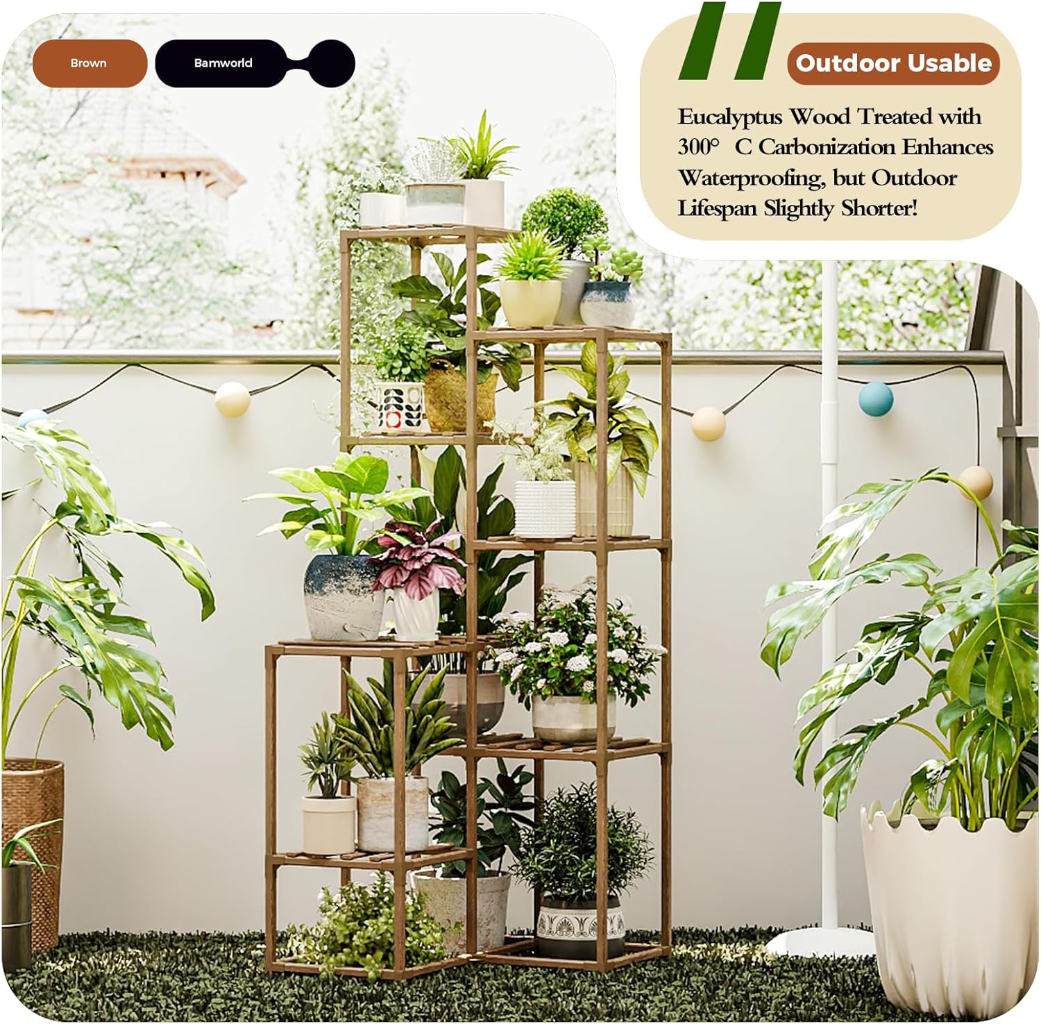 - Carbonized Natural Wood: Eucalyptus wood has been carbonized at 300°C to enhance waterproof performance and extend service life (but outdoor life may be slightly shorter).