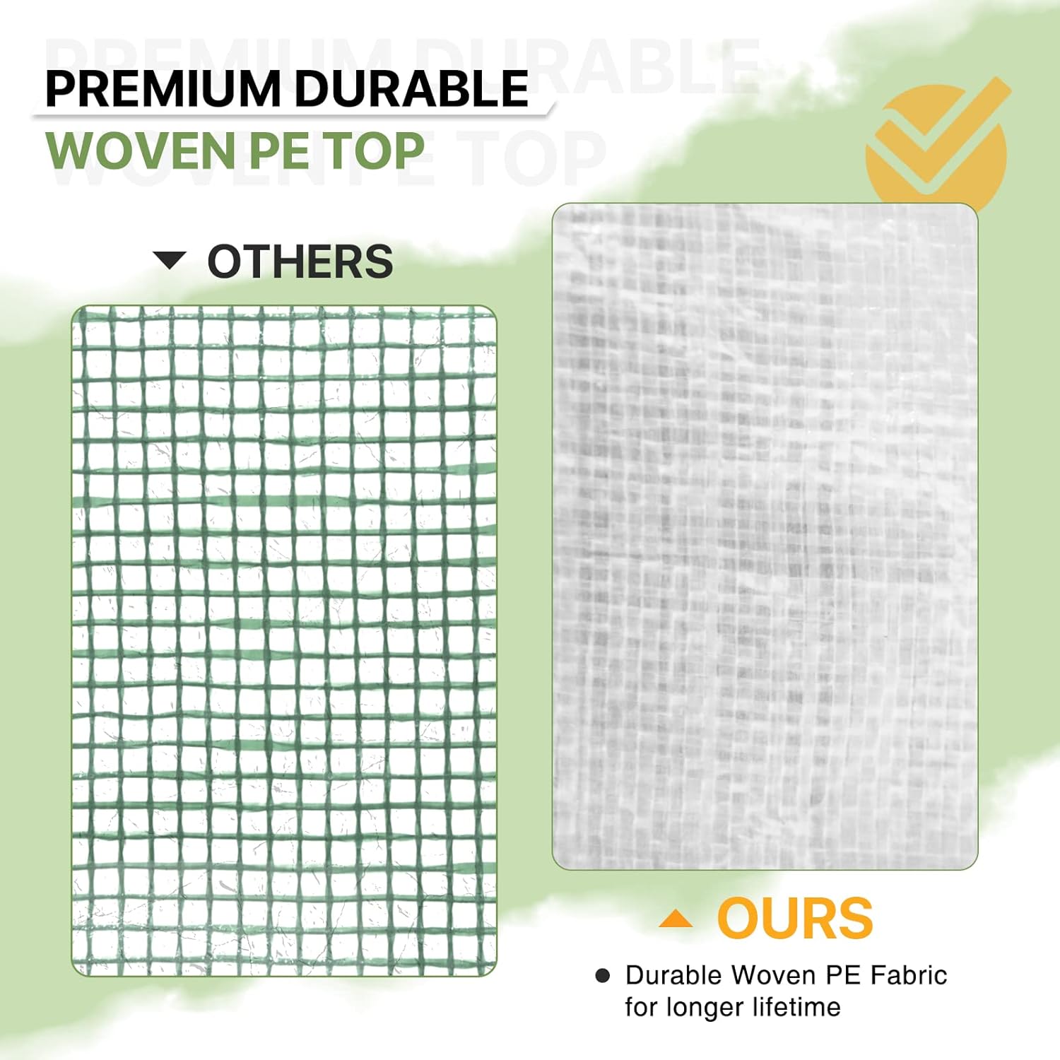 - PROTECTIVE WOVEN PE COVER: This portable greenhouse kit includes a high-quality, plant-safe, waterproof and UV-resistant cover which is made of durable 150g/sgm woven PE cover with 70% light transmission, designed to maintain humidity levels and ensure just the right amount of sunlight for your garden; perfect for creating a healthy growth environment in any season for your flowers, herbs and vegetables to thrive