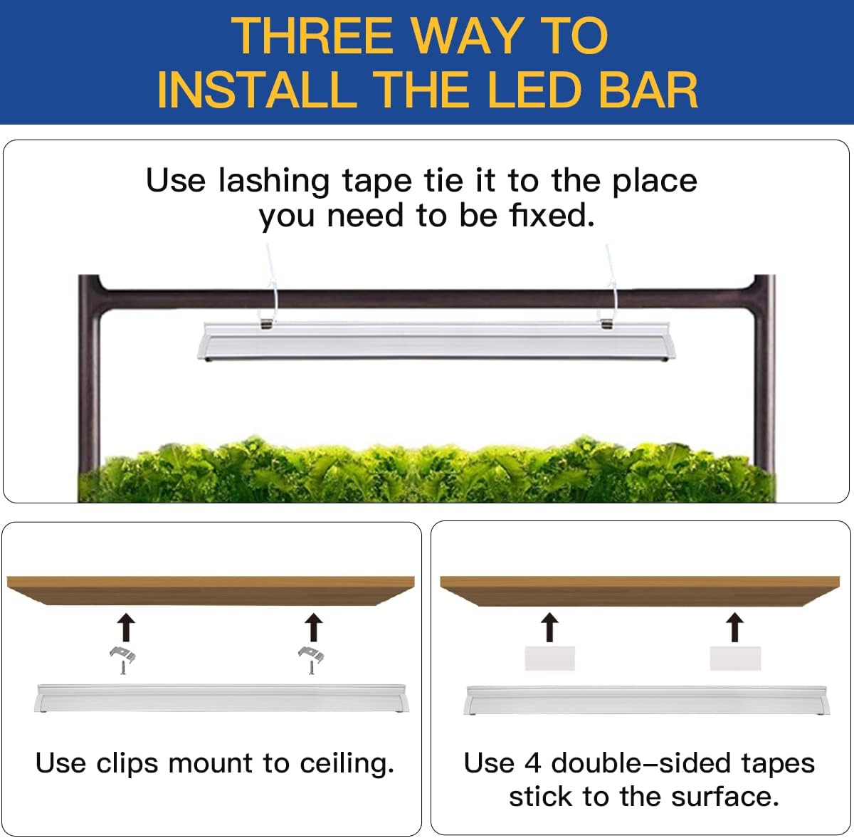 - 🪴【Safe & Easy Installation】This growing lamp strip can be installed in a variety of ways. Equipped with screws, double-sided tapes, zip ties, clips and dust caps, it can prevent dust and fog from entering the connection port, and protect your safety when the LED light is working.