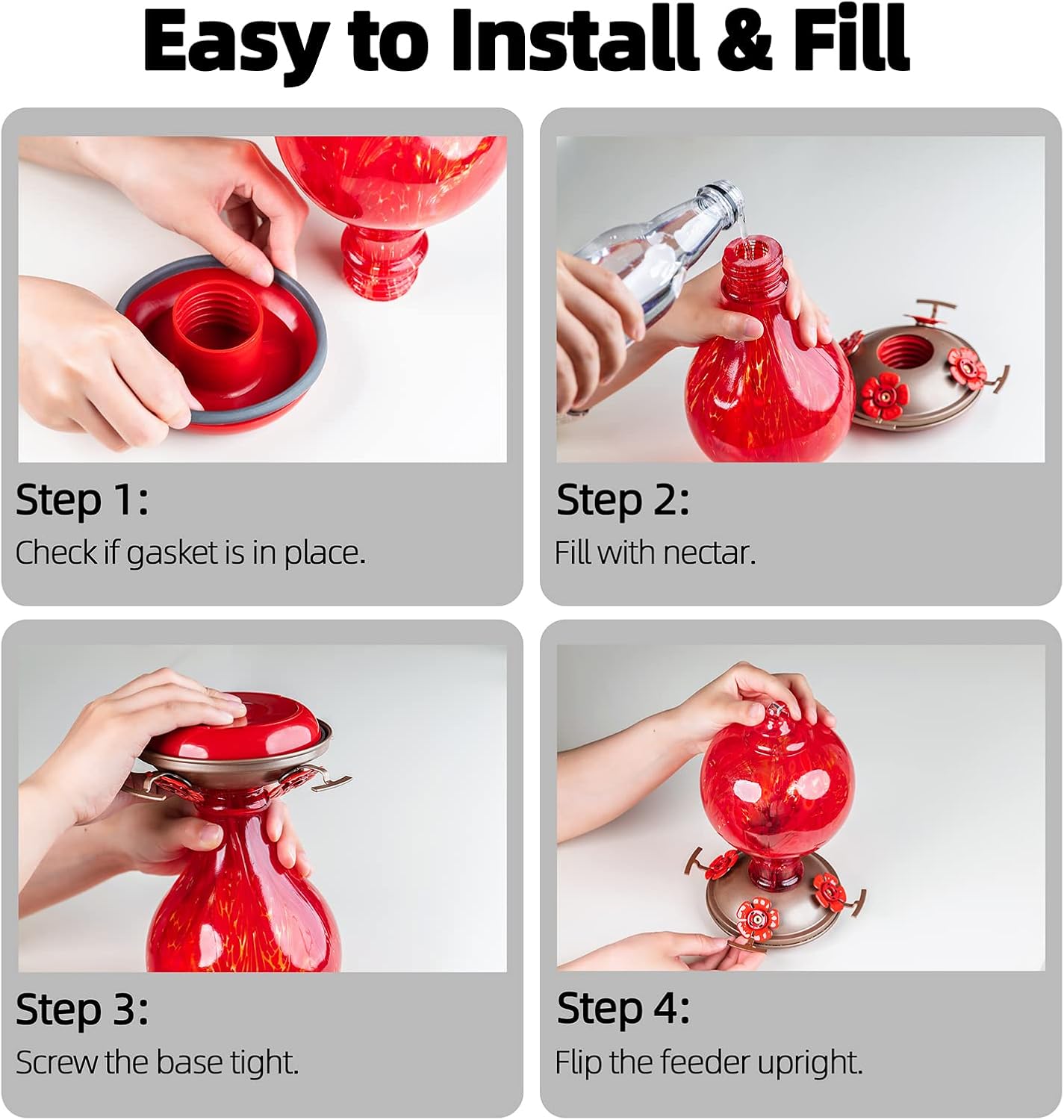 - 【Outdoor Garden Decor】: The ant moat will keep ants away from the sugar water. Please make sure the gasket is securely attached before you hanging outside. It will be the perfect backyard decor.