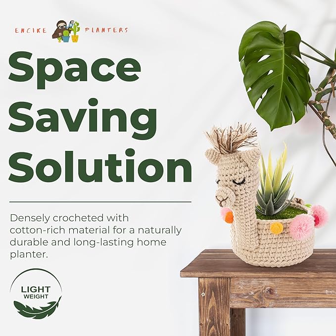 - Clears up Clutter - While our sloth plant hanger is ideal for hanging plants, our knit llama planter holder is ideal for displaying small plant pots on your desk. It is adorned with colorful pom-poms to keep your favorite succulents on display at the office, in the playroom or in the kitchen.