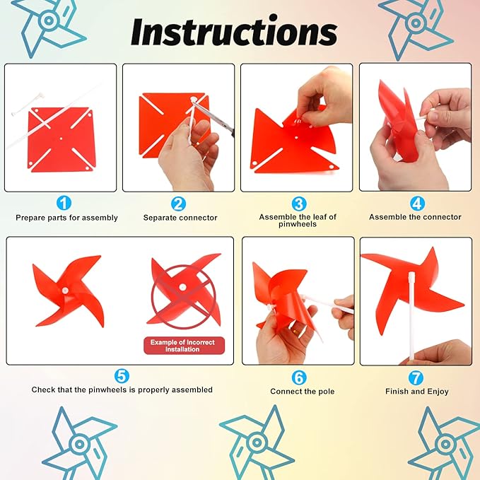 - Easy to Assemble: You can check the instructions in product page to assemble these pinwheels. Note: Be sure to check that the windmill is properly installed.