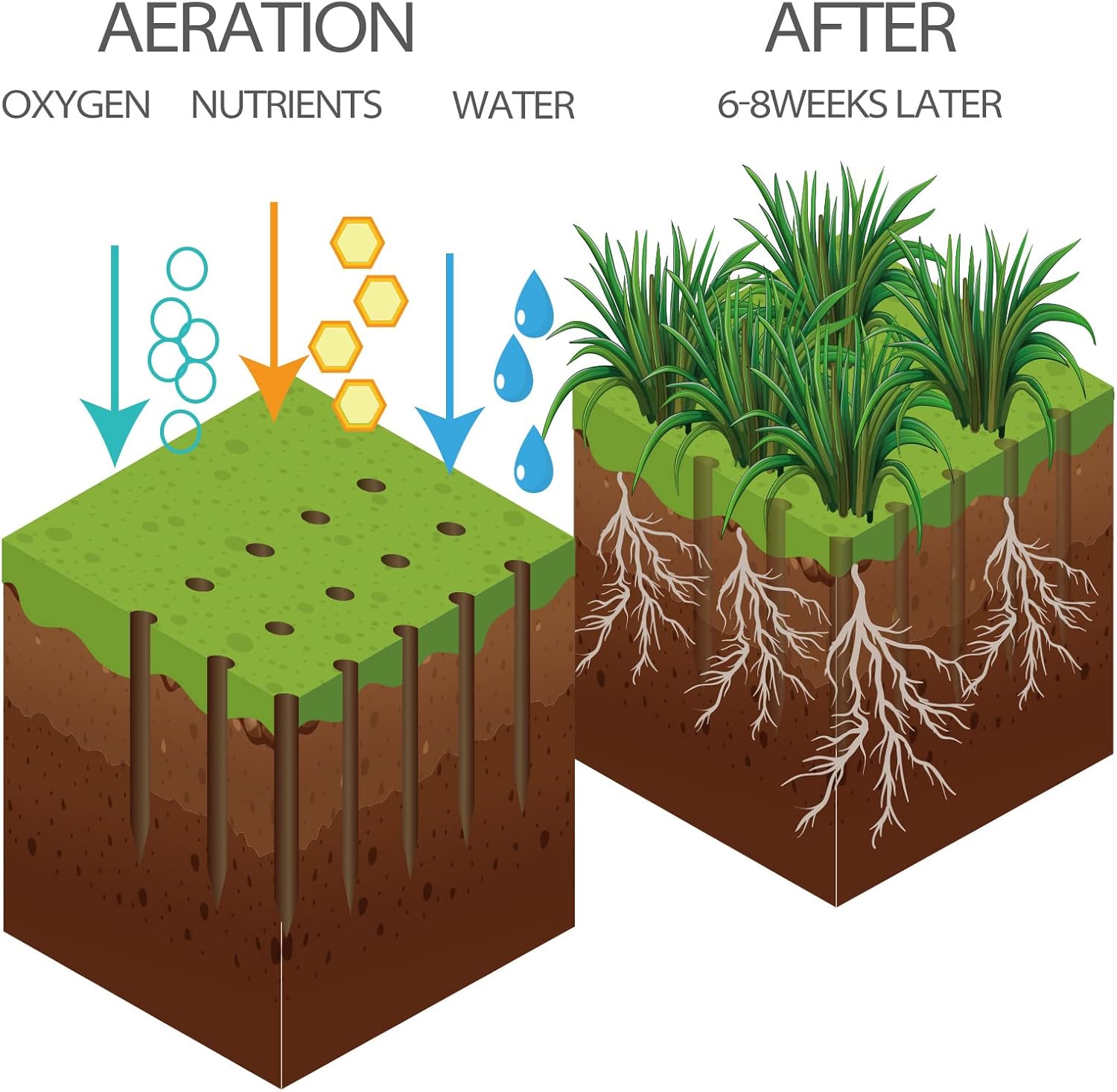 - EFFECTIVE LAWN REVIVAL TOOL:Walensee manual lawn aerator helps you loosen soil and thatch to let air, water, and fertilizer down to the lawn's roots system, making good preparation for your seeding, and helping plants grow better! The drainage function makes your lawn thicker and healthier. With Walensee aerator tools to help you get a more healthy, beautiful, and vibrant lawn/garden/yard/patio.