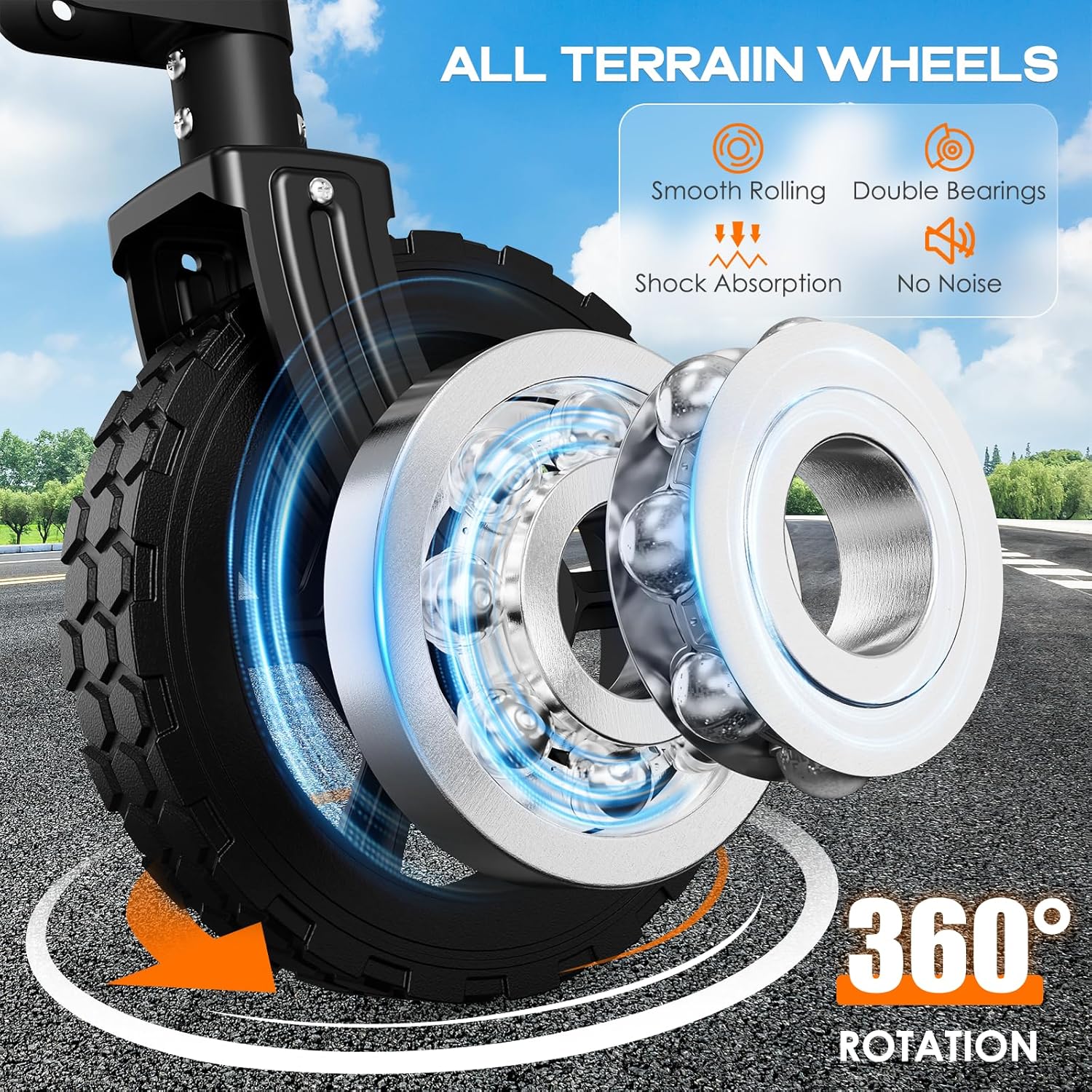 - Double Bearing Design : Built in double bearings to ensure a max load capacity, which can roll smoothly and with less effort and have a strong maneuverability enough to keep its goods intact over mud, grass, bumps, and curbs. At the same time, we adapt the design of double bearing to prolong the life and performance of the wheels.