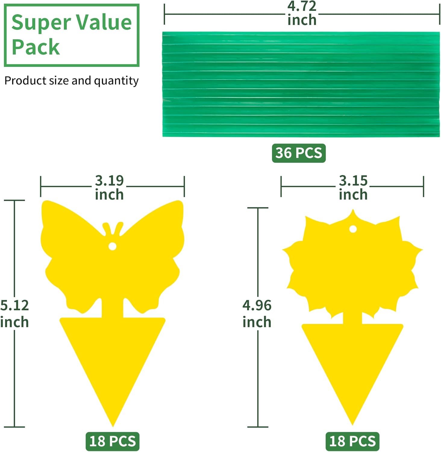 LULUCATCH Fruit Fly Sticky Trap 36 Pack, Safe Gnat Traps for Fruits, Plants, Super Sticky Fly Trap for Indoor, Outdoor, Kitchen, Insect Catcher for White Flies, Mosquitos, Fungus Gnats, Flying Insects