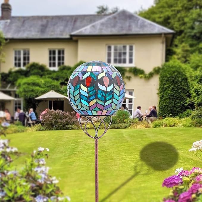 - 【Unique Design】Solar garden light is designed with mosaic glass globe ball, which lights up beautifully and looks fabulous! Garden lights enough to create a romantic atmosphere for you and attract your neighbor's eye to your yard