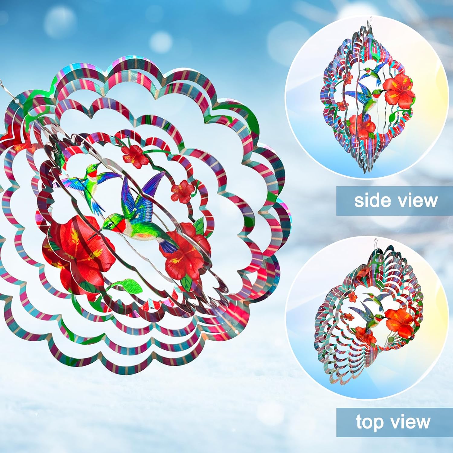 - 【New Inspiration for Wind Spinners】This decorative spinner is sure to inspire your decoration ideas. Hummingbird Wind Spinner can also be used as a wall decoration when it is flat, this hummingbird spinner can create a charming and mysterious atmosphere, integrate with any home decoration. And you can find new uses for the Wind Spinner, such as a Christmas ornament by placing it next to Christmas tree lights. This will create a beautiful kaleidoscope effect that may attract Santa Claus!