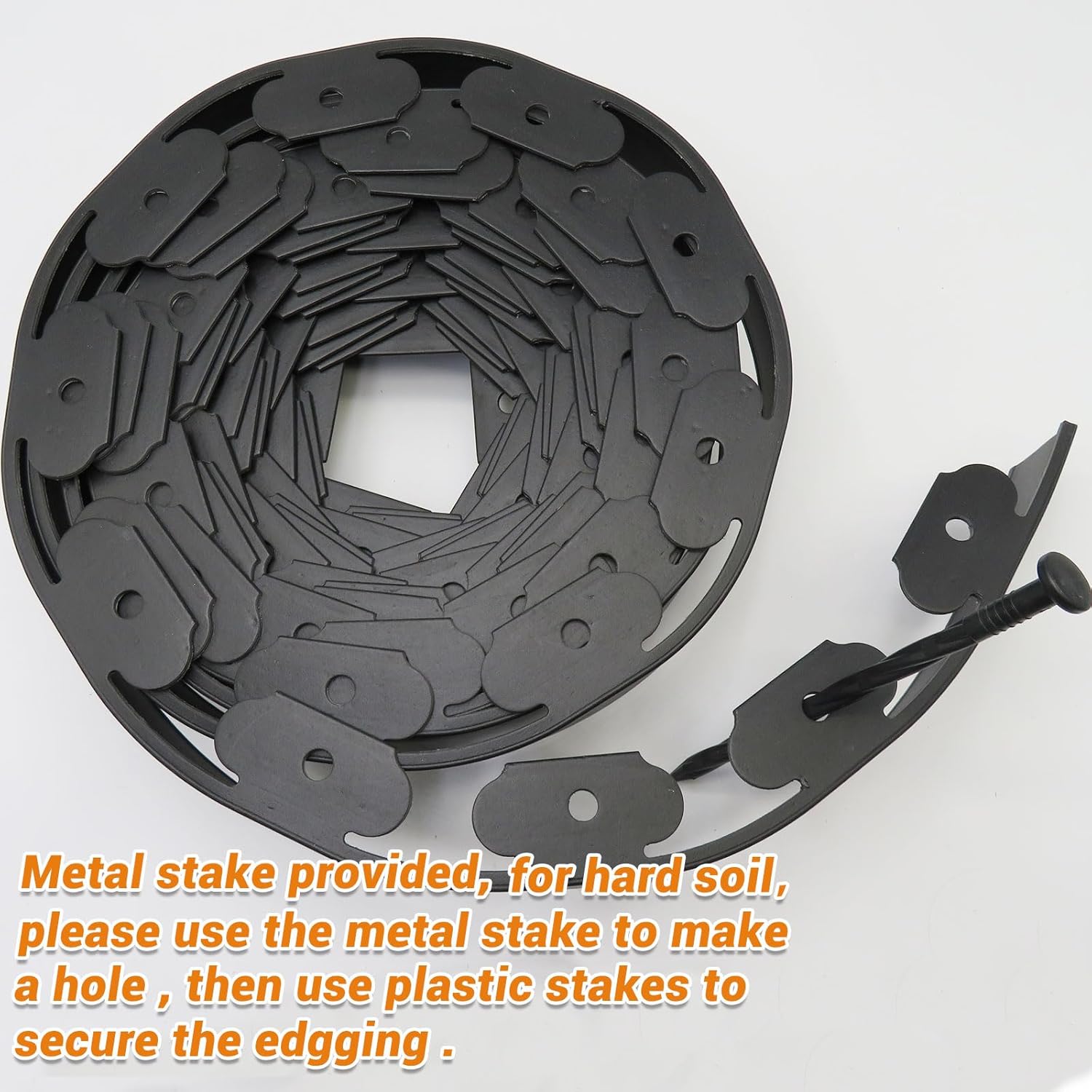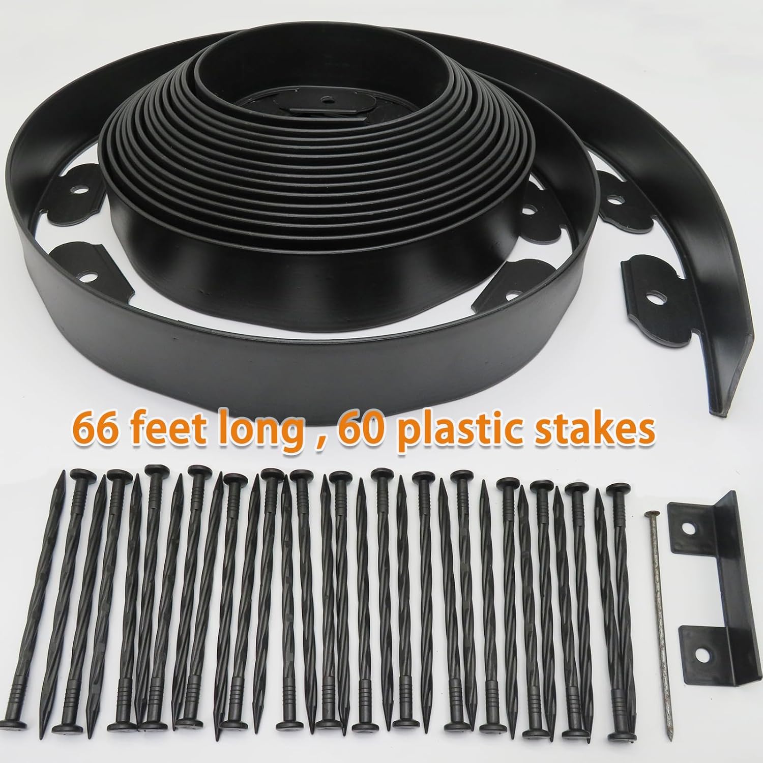 - 【Item Dimensions】66 feet length totally, 2 rolls,2 inch height landscape edging and 60pcs 8-inch spikes. The garden edging ,suitable for lawns edging,flower beds and pathways.